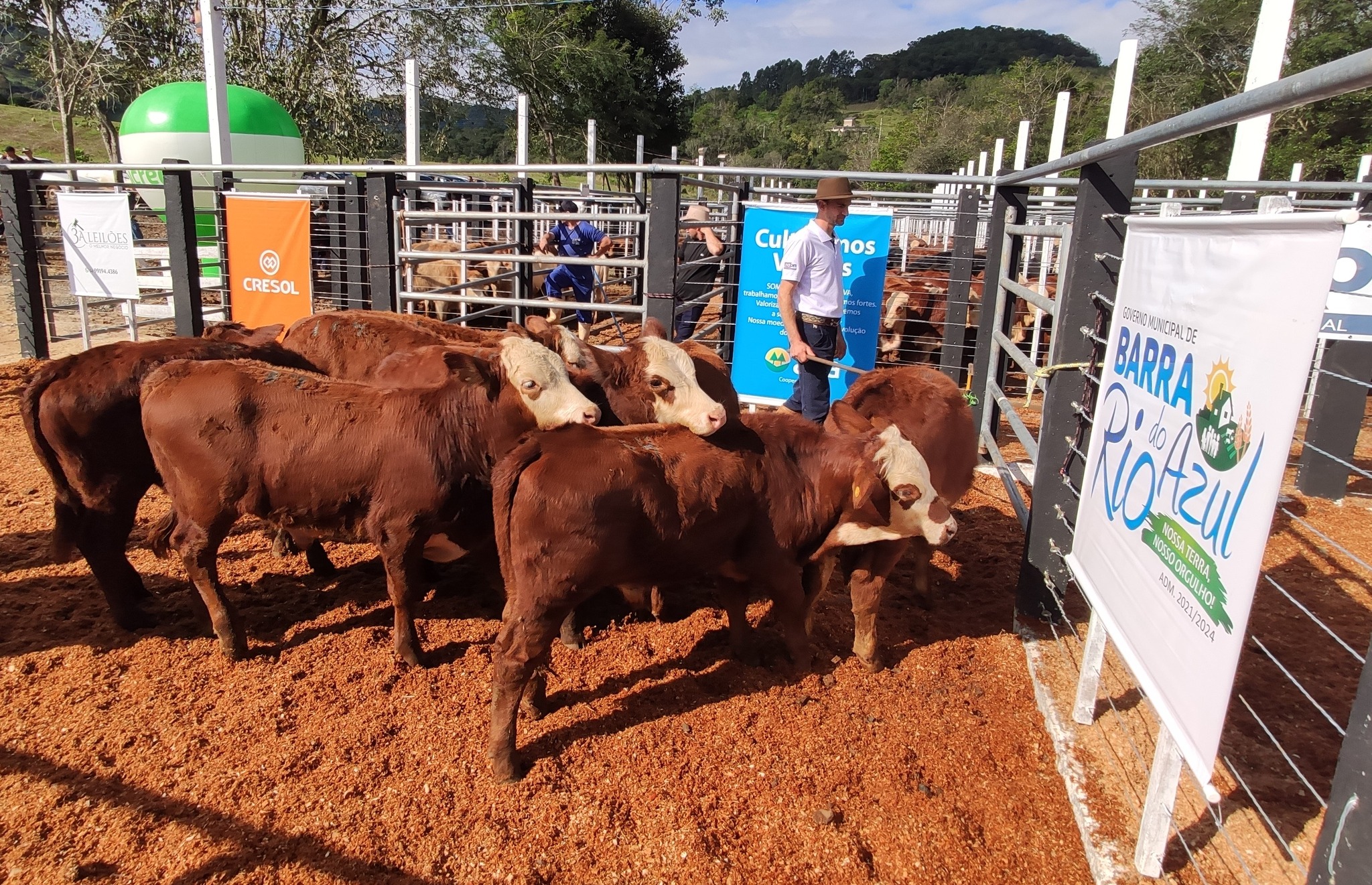 Entre as autoridades presentes -prefeito de Barra do Rio Azul, Marcelo Arruda, vice-prefeito, Maximino Basso, presidente da Câmara de Vereadores, Idione Marmentini, Médica Veterinária, Andréia da Inspetoria Veterinária do Estado e Supervisora Regional de Passo Fundo e Erechim, Michele Maroso, Coordenador do Núcleo dos Criadores de Gado de Barra do Rio Azul, Gleison Busatto, secretário Municipal da Agricultura, Leocir Feranti, Gerente da Cresol, Júlio Pan e o Gerente da Sicredi, Guilherme Kaminski.