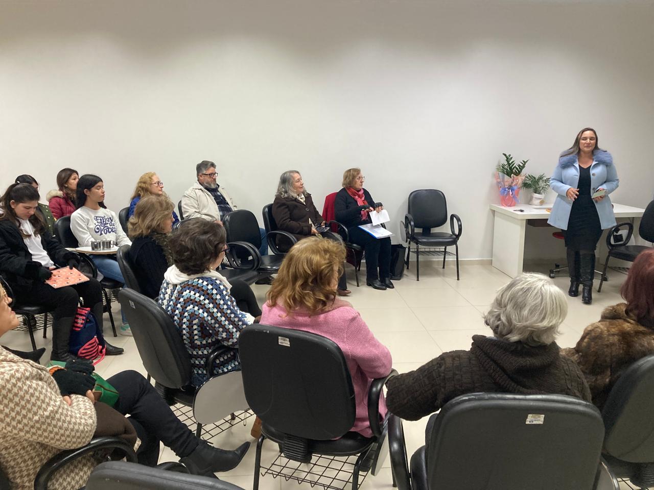Participantes do Café com leitura se encontraram na Biblioteca do Sesc/Erechim, na tarde de quarta-feira (10), e iniciaram suas atividades com a presença da convidada Izabel Cristina Rocha Ribeiro que desenvolveu o tema "Florescer na Rocha", versando sobre felicidade.