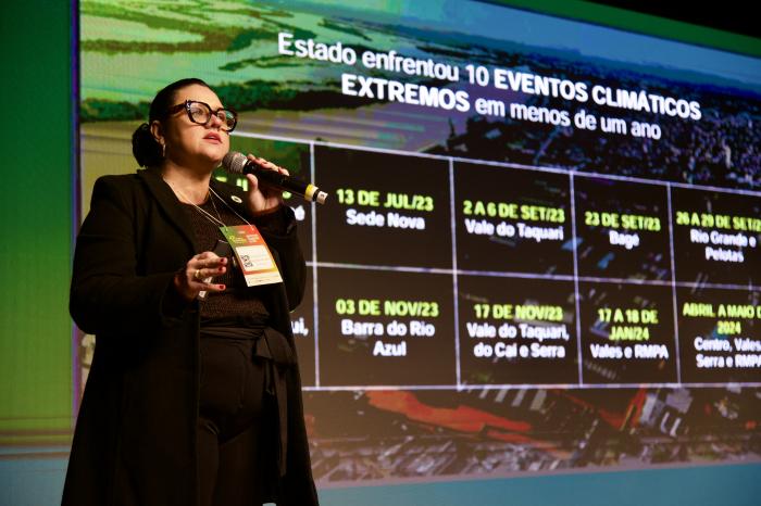 Durante a programação do 42º Congresso de Municípios do RS, o governo do Estado apresentou dados do impacto climático do último ano, período em que o estado registrou pelo menos dez eventos extremos. Os números foram apresentados pela secretária do Meio Ambiente e Infraestrutura do RS (Sema), Marjorie Kauffmann, que também destacou ações ambientais desenvolvidas pelo governo estadual sobre a arborização urbana e o desassoreamento dos cursos hídricos gaúchos.