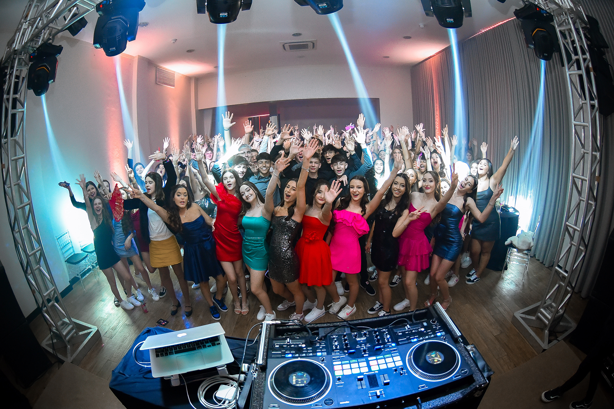 A pista de dança foi comandada pelo DJ Renan Bertotti, que garantiu a animação dos participantes com um repertório variado, atendendo aos gostos musicais dos jovens presentes. Além da dança, o evento ofereceu diversas opções de entretenimento, promovendo a integração entre os convidados.
