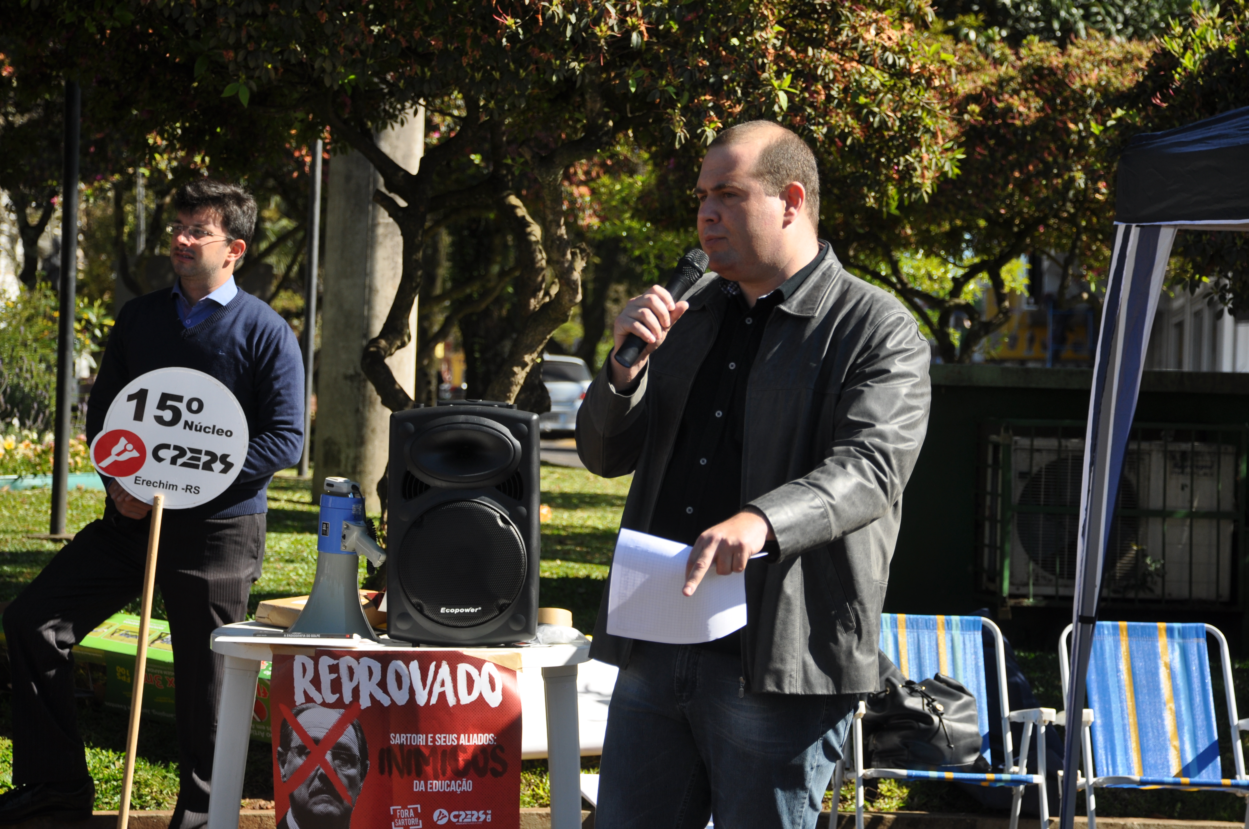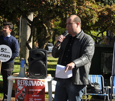 O responsável por ministrar a aula pública foi o professor da Universidade Federal da Fronteira Sul, Thiago Ingrassia Pereira. Participaram também do ato estudantes e técnicos administrativos da UFFS.