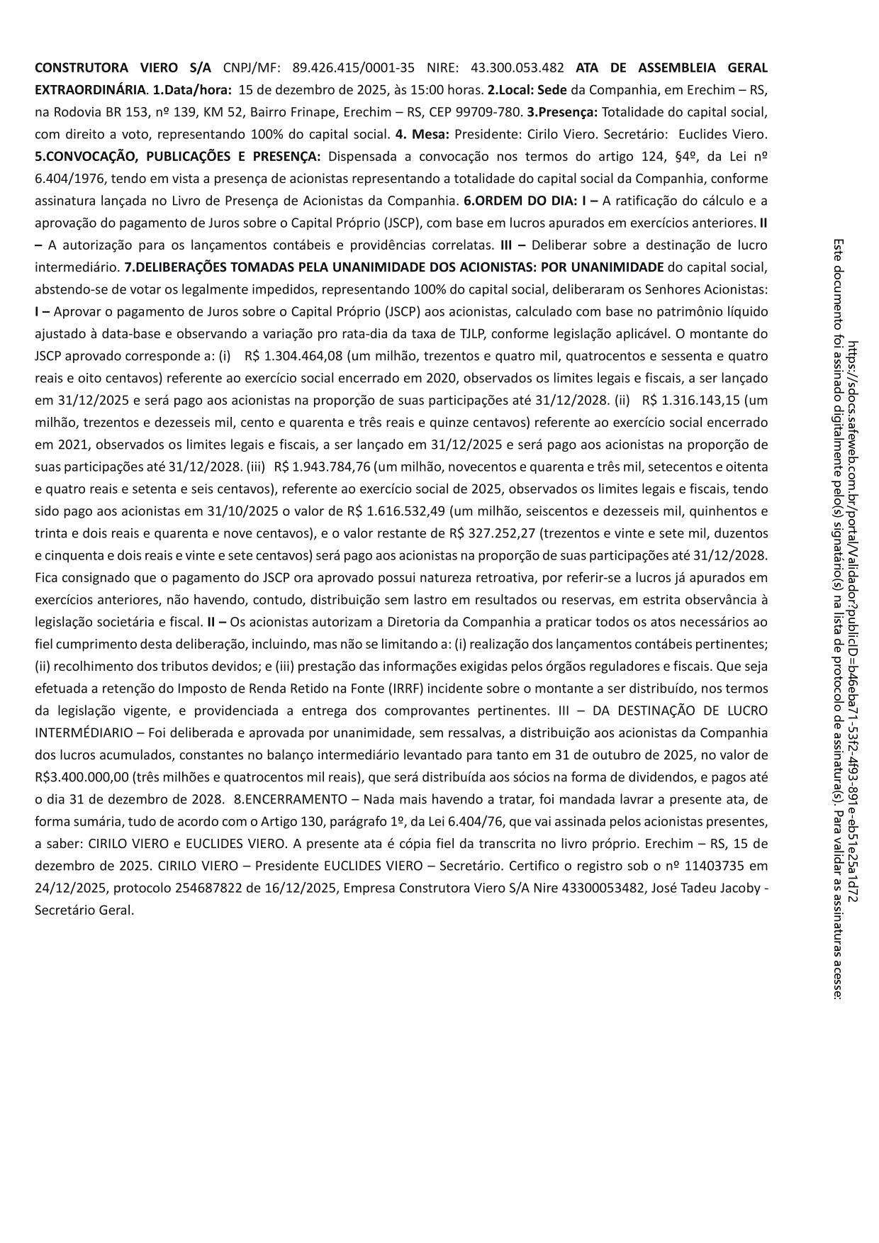 Balanço Patrimonial 31/12/2024 - 31/12/2025