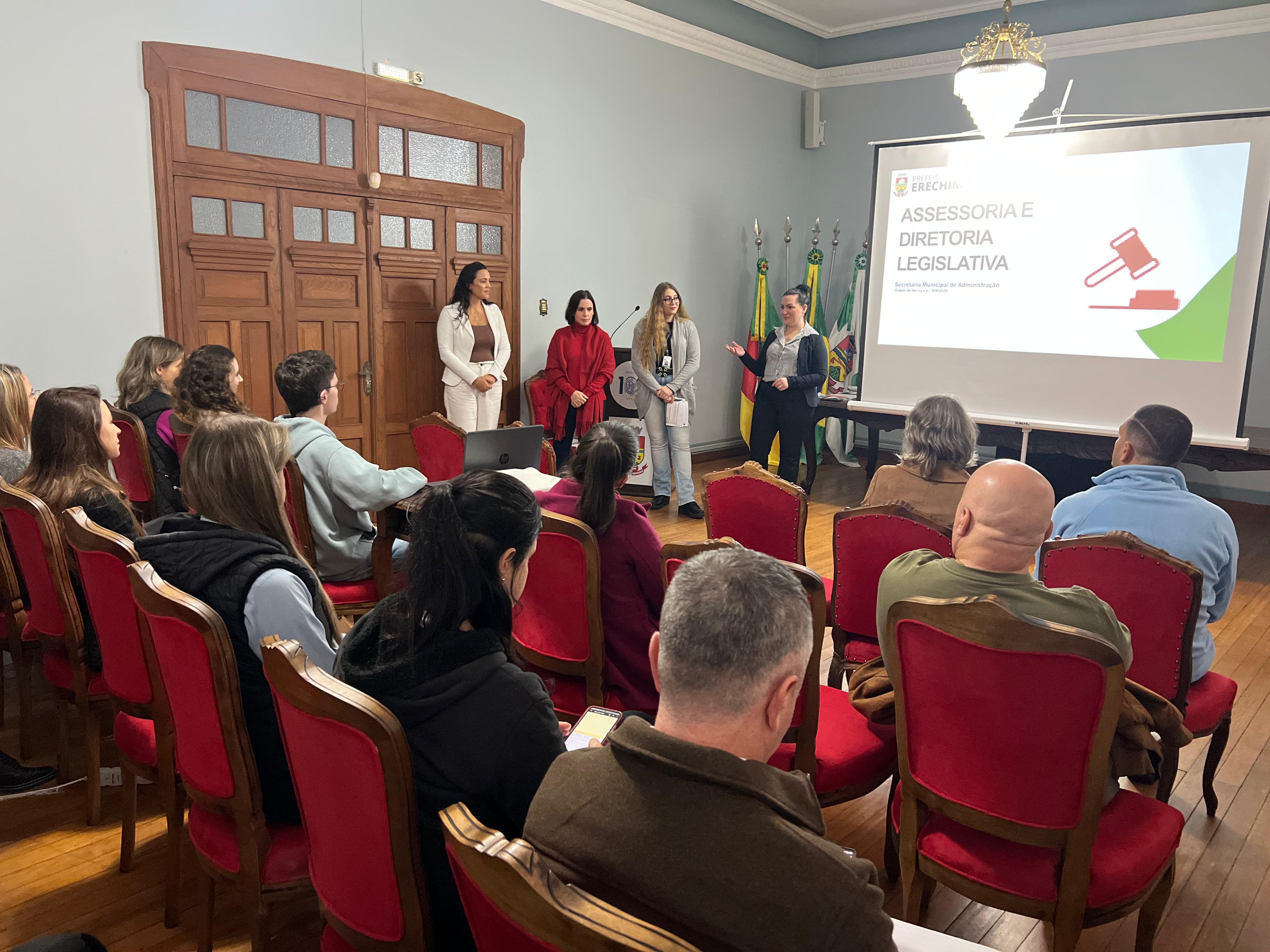 A capacitação, “Noções gerais de processo legislativo” abordou conceitos, fluxos e tramitação entre setores; conceito e diferença entre lei e decreto; projeto de lei: minuta e justificativa; processo legislativo: fluxo e tramitação; lei e consolidação. O trabalho foi conduzido pelo Setor de Diretoria Legislativa – composto pelos servidores Sérgio Mendes Jr., Aline Pansera, Carol Zill e Laura Zanella.