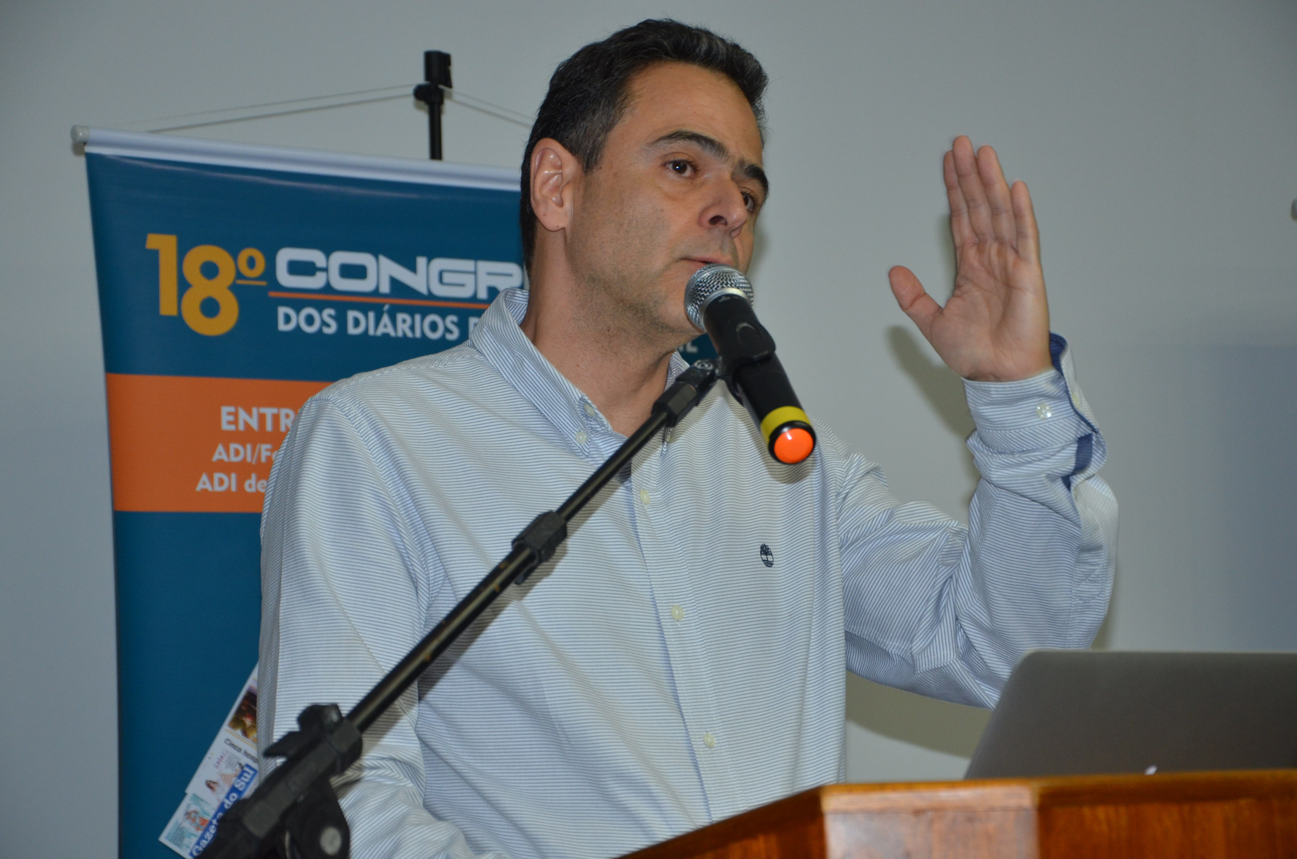 O meste em jornalismo Lourival Sant'Anna foi o primeiro palestrante do 18º Congresso da Associaçao dos Diários do Interior. O bloqueiro de O Estadão, repórter do aplicativo Exame e analista internacional da CBN, afirmou que o pluralismo e a isenção serão os difereciais dos jornais impressos que ficarão no mercado na era digital.