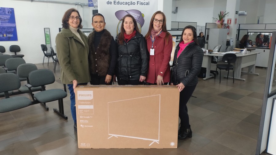 A ganhadora do prêmio do sorteio de maio, correspondente a uma TV de 50 polegadas, entregue pelo município de Erechim no programa do Nota Fiscal Gaúcha (NFG), Neuza Lurdes Moterle, foi recebida nesta quarta-feira (11), na Secretaria Municipal da Fazenda, pela secretária, Ana Oliveira e pelos representantes da Comissão de Educação Fiscal e Tributária de Erechim.