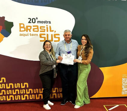 Representaram o município no congresso enfermeira, Nathália Bagnara, a psicóloga, Marieli Pascolon, e o secretário de Saúde, Dirceu Fiabani, que participou, ativamente, das ações e da apresentação do projeto.
