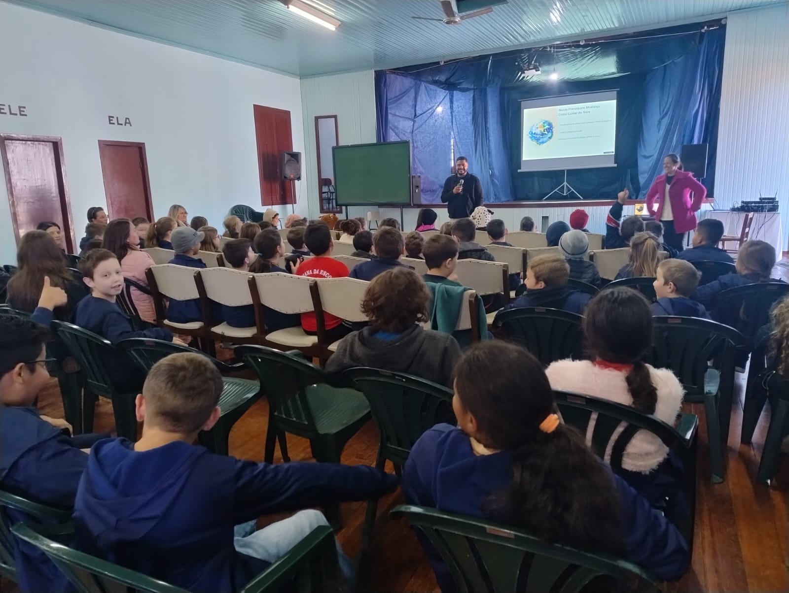 A atividade contou com a presença da vice-prefeita Luciana Folle, do secretário de Meio Ambiente, Giuvan Gorrosterazu Pietrobom, da secretária de Educação e Cultura, Tatieli Rodighiero Hahn, além de diretores, professores e demais integrantes da comunidade escolar.