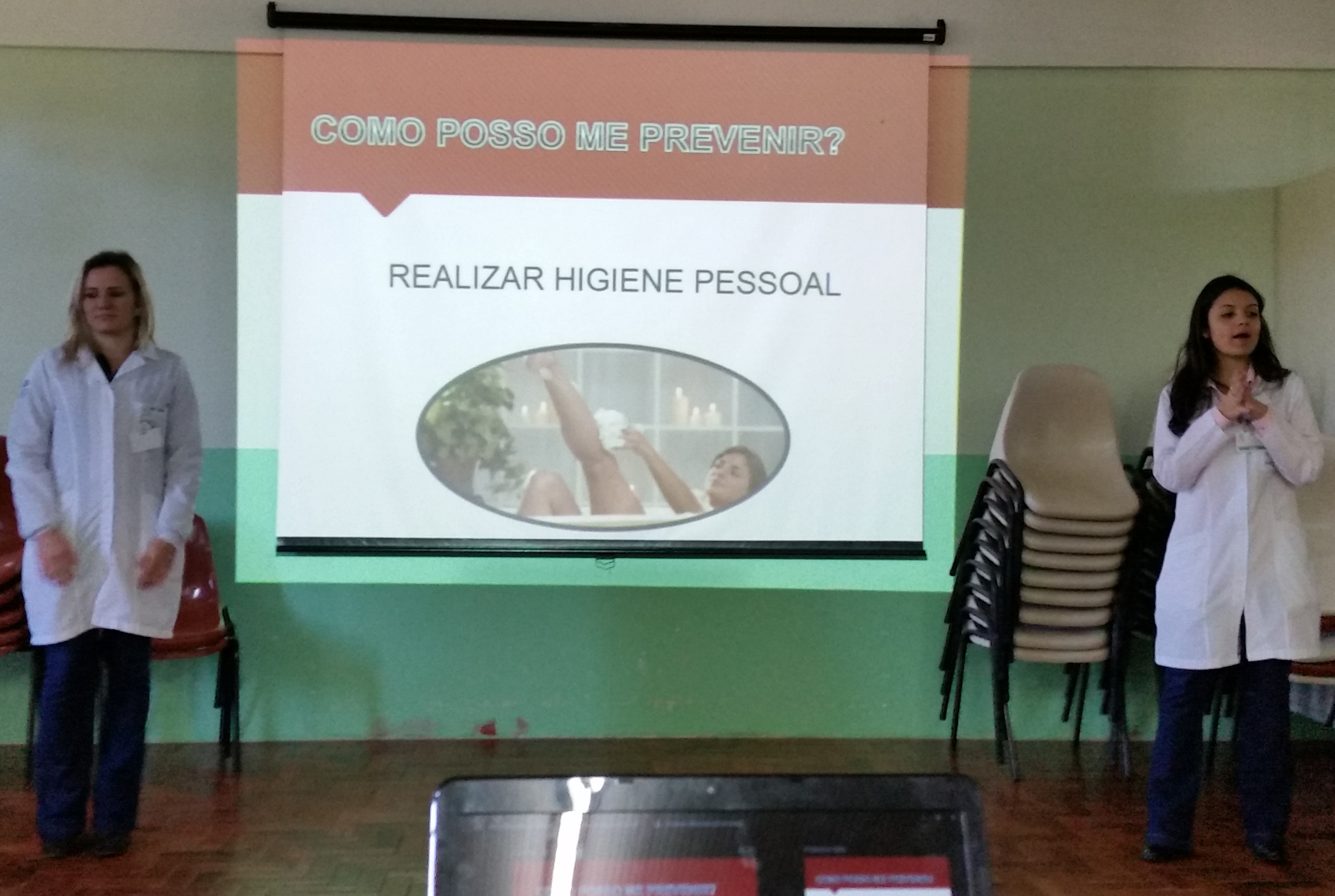 Num segundo momento, as acadêmicas destacaram a importância da vacinação bem como expuseram orientações sobre o HPV. O encontro contou com a participação de 3 turmas do Ensino Médio com aproximadamente 50 alunos. Participaram do encontro, as acadêmicas Gabriela Konopatzki, Fabiane Tainá Ulkovski, acompanhadas da Professora Regina Rockenbach Bidel.
