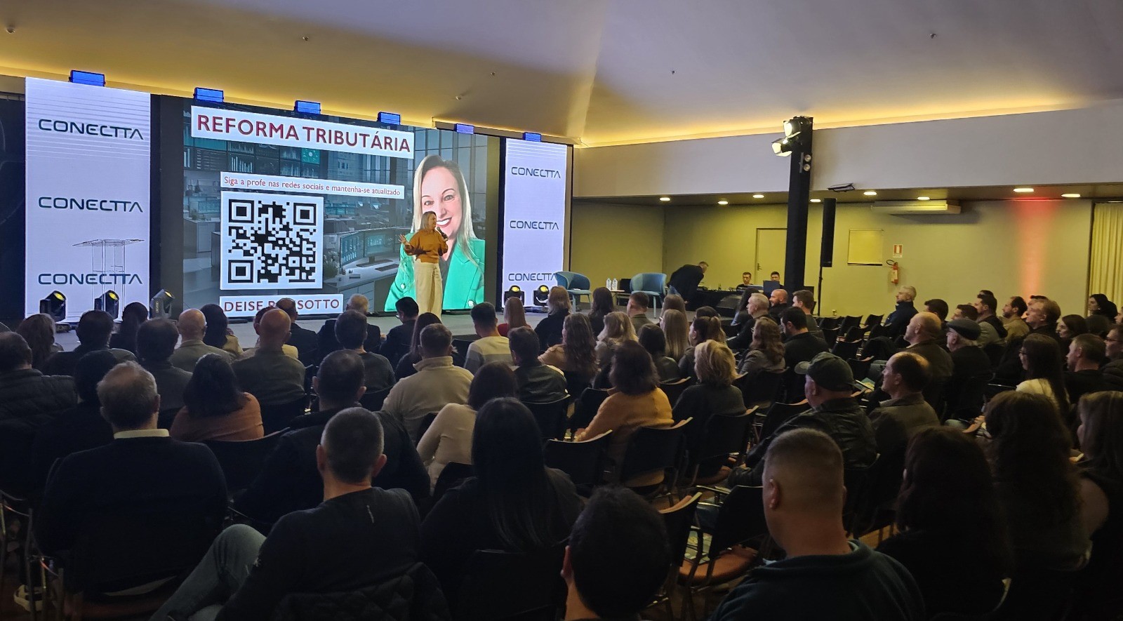 A segunda palestra da noite do dia 22 e treinamento no dia 23 foi com Deise Parisotto, com o tema “Reforma Tributária: impactos, desafios e oportunidades para as empresas. A palestrante é Bacharel em Ciências Contábeis pela UCS, mestranda em Ciências Empresariais pela Universidade Fernando Pessoa (Portugal), com MBAs em Gestão Empresarial, Perícia Judicial e Extrajudicial, Direito Tributário, Compliance e Auditoria Digital. Possui também pós-graduação em Docência e Metodologias do Ensino Superior, e atualmente cursa MBA em Contabilidade e Tributos do Agronegócio. É coautora de obras na área tributária, além de ser a idealizadora e palestrante do Mega Encontro Tributário do RS, atua como docente de pós-graduação no IPOG e instrutora de treinamentos.