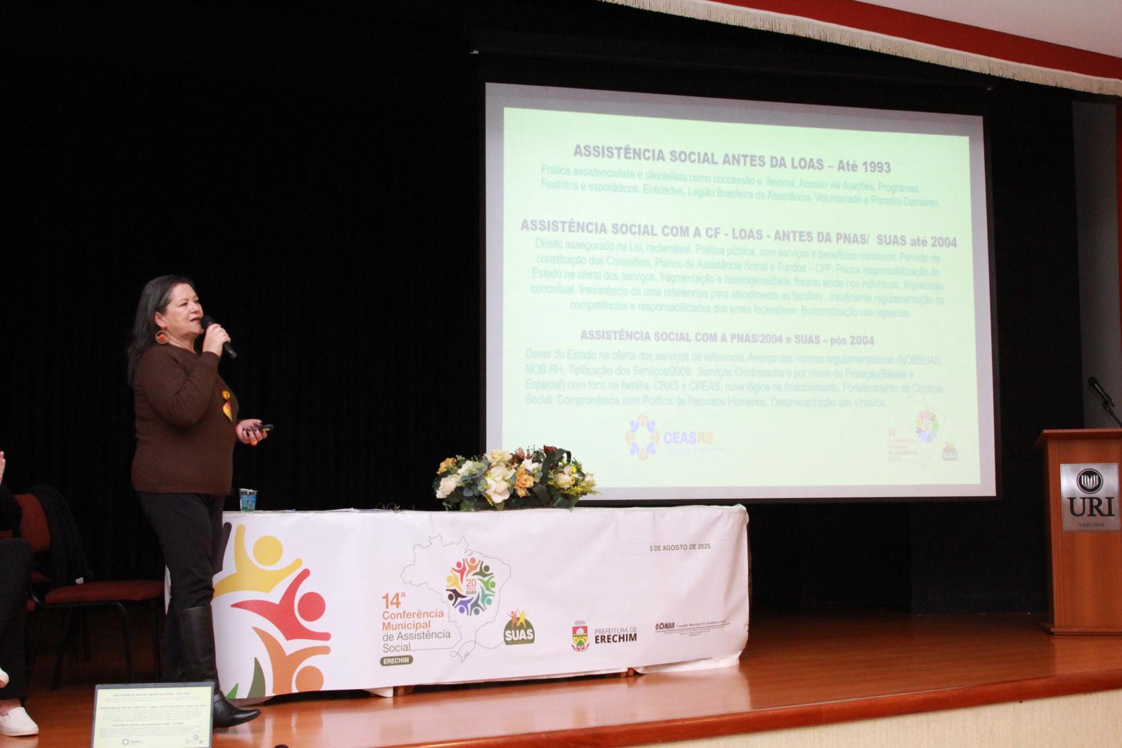 A 14ª Conferência Municipal de Assistência Social de Erechim foi realizada na terça-feira, 5 de agosto, no auditório da URI, com o tema central “20 anos do Sistema Único de Assistência Social (SUAS)”. Promovido pela Prefeitura de Erechim, por meio da Secretaria Municipal de Assistência Social, em parceria com o Conselho Municipal de Assistência Social (COMAS), o evento reuniu usuários, trabalhadores da área, gestores públicos e representantes da sociedade civil.