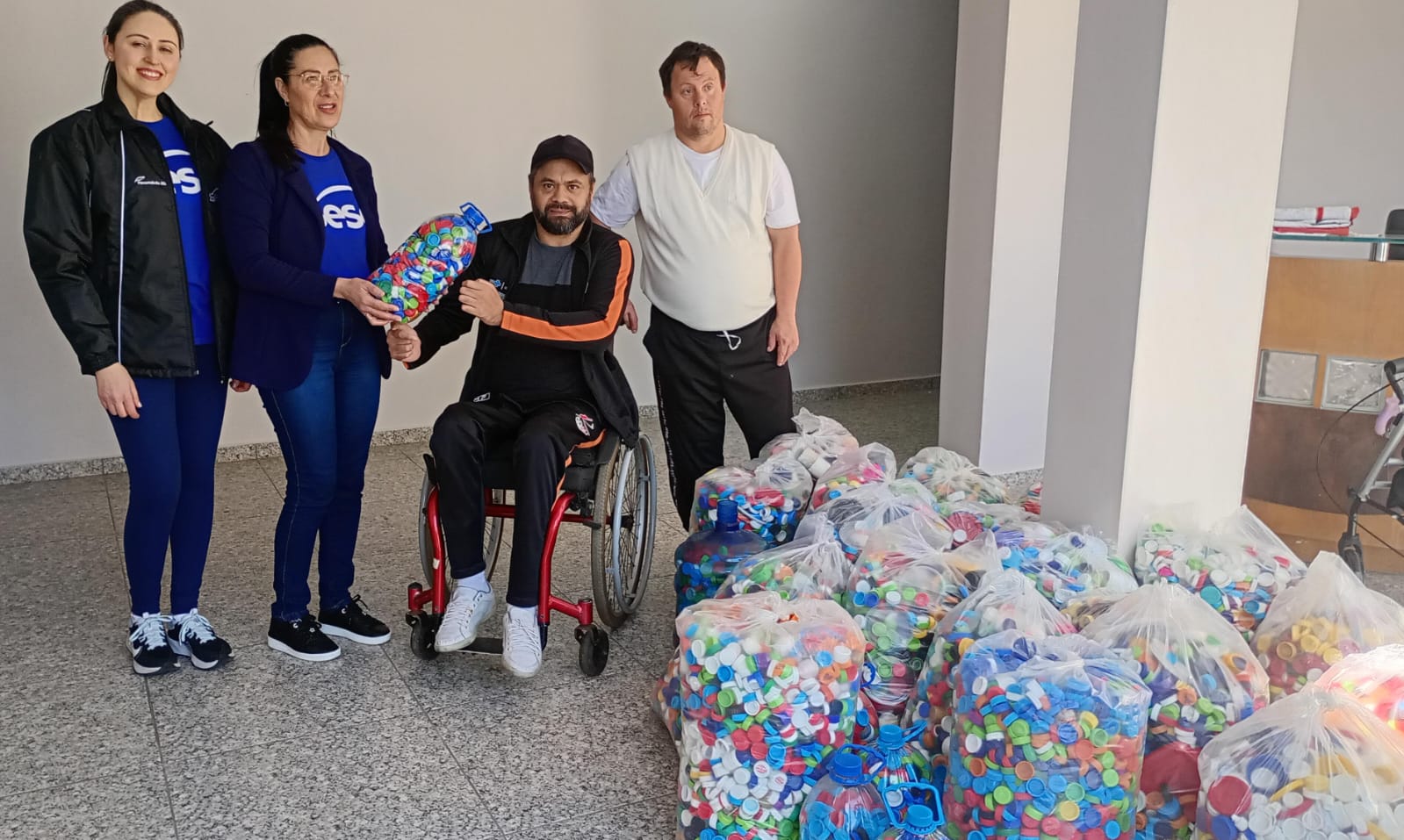 No dia 20 de agosto, última quarta-feira, o Sesc Erechim fez a entrega das tampinhas coletadas para a Associação dos Deficientes Físicos do Alto Uruguai (Adau). O Projeto Tampinha Solidária da instituição comercializa tampinhas para a aquisição de materiais ortopédicos, como muletas, cadeiras de rodas e botas, que são disponibilizados aos assistidos.