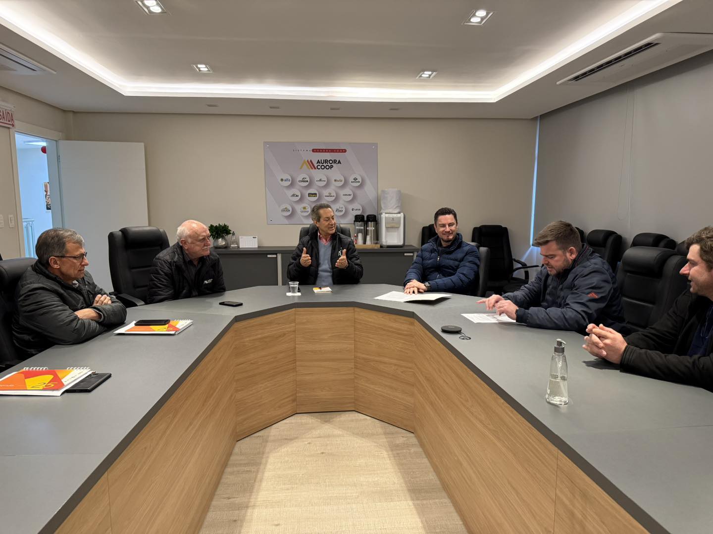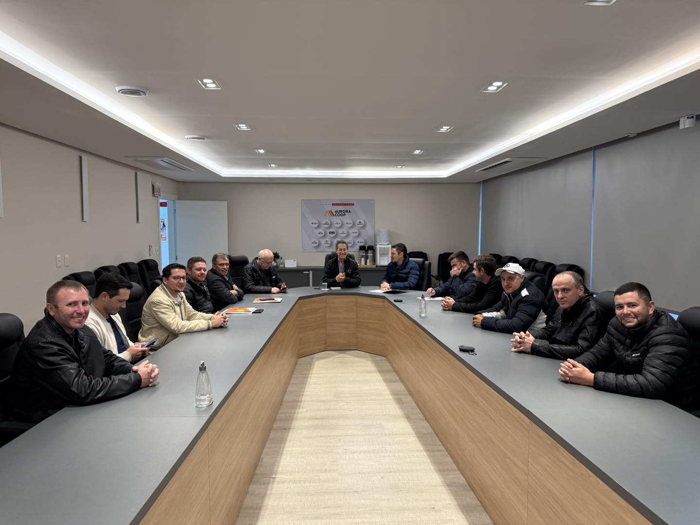 O prefeito de Barra do Rio Azul, Anderson Bagatini, acompanhou avicultores da região em reunião com a diretoria da cooperativa Aurora Coop na terça-feira (26), na sede da entidade em Chapecó.