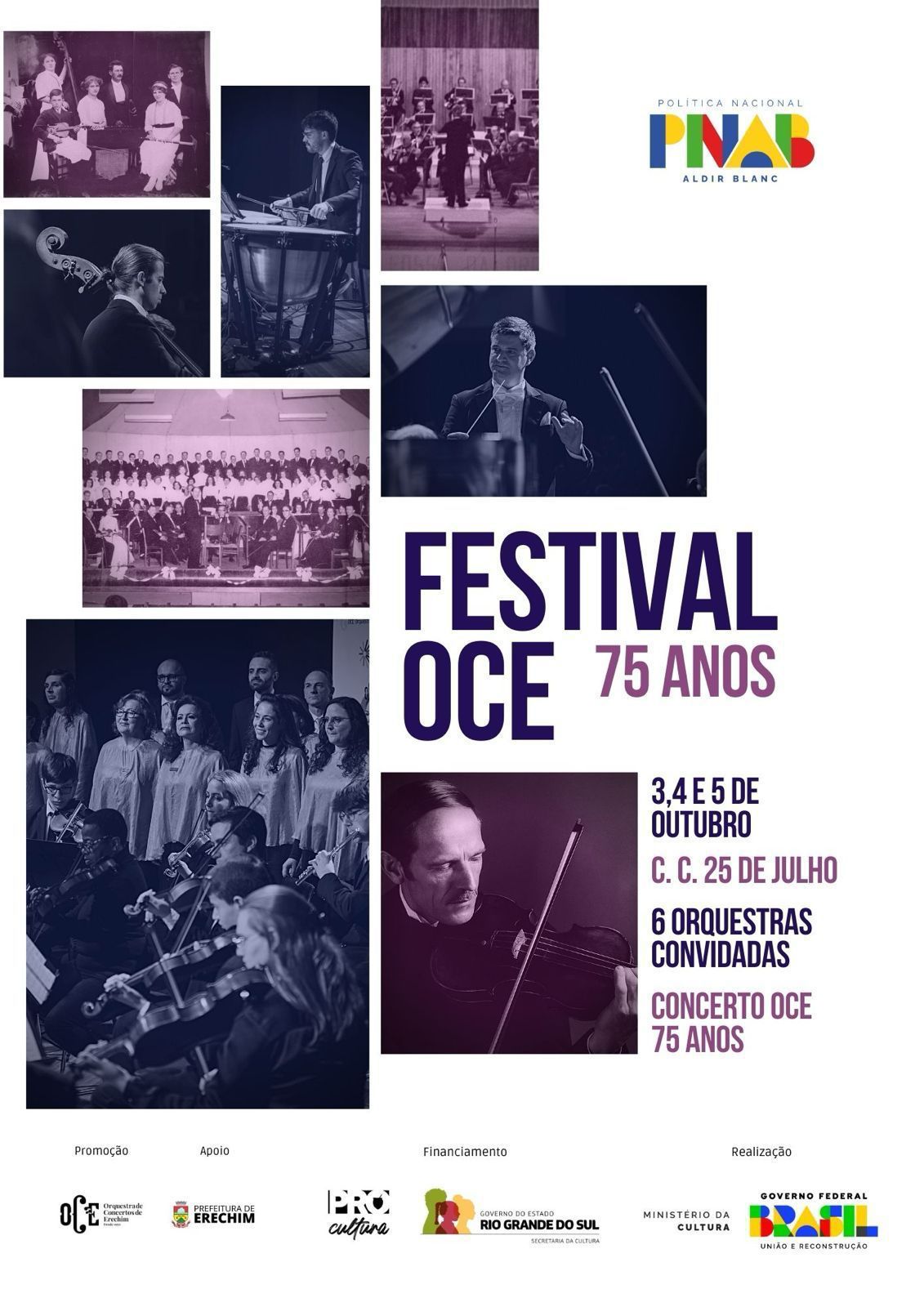 O festival é promovido pela OCE, com apoio da Prefeitura de Erechim, financiamento do Pró-Cultura RS, por meio da Política Nacional Aldir Blanc, e Governo do Estado do Rio Grande do Sul, e realização do Ministério da Cultura e Governo Federal.
