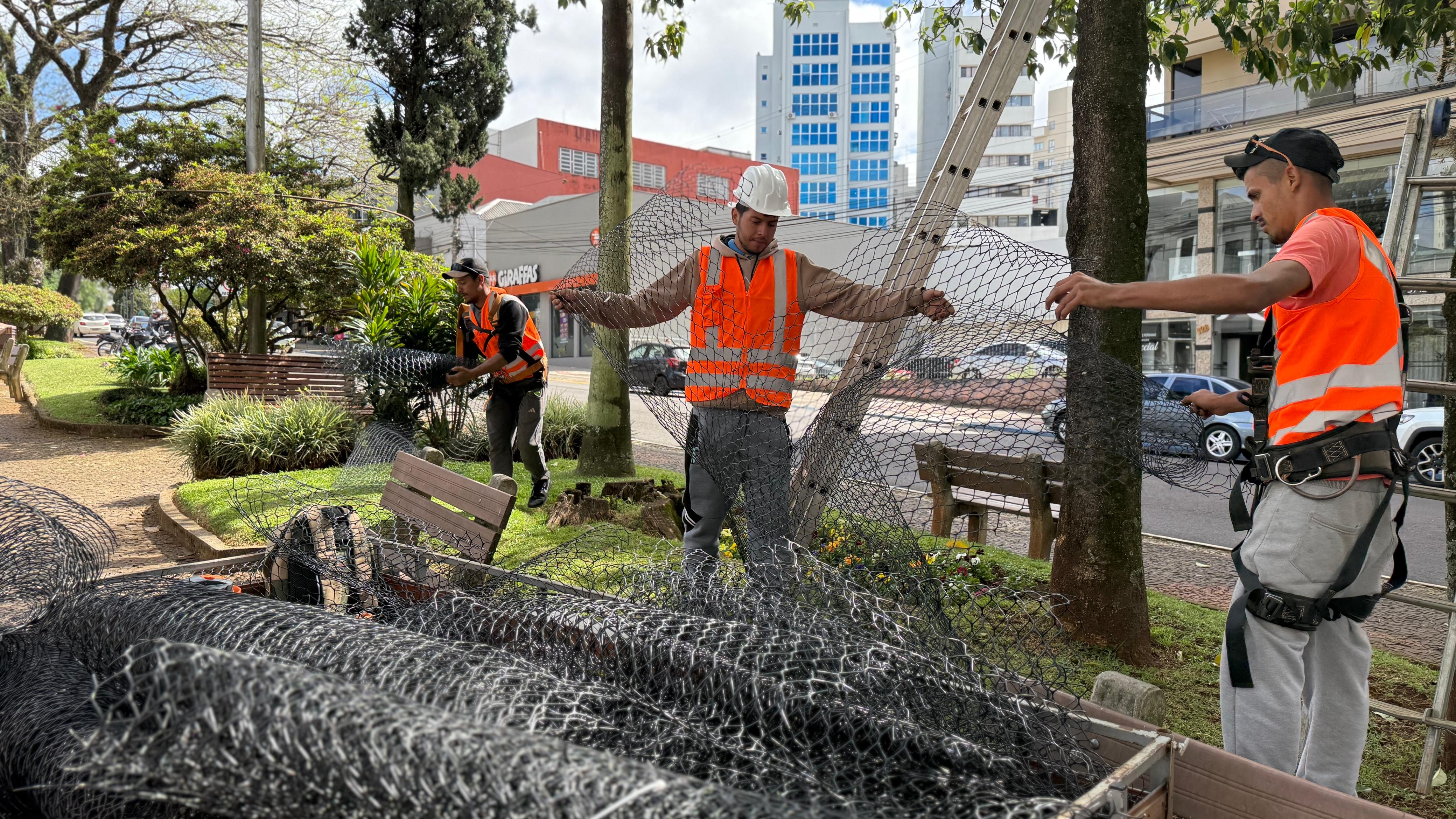 Erechim já começou a se preparar para o Natal 2025. Desde a última terça-feira (07), a empresa responsável pela decoração iniciou a colocação das telas plásticas nas árvores das principais avenidas e praças da cidade, preparando o espaço para a instalação das luzes natalinas.