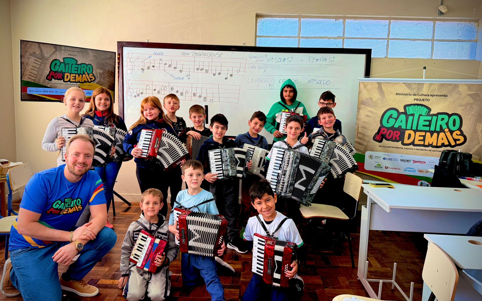 Em sua segunda e consolidada edição, o "Gaiteiro por Demais" abraça com afeto e dedicação cerca de 70 crianças e adolescentes estudantes de escolas públicas, distribuídos em dois núcleos distintos nas cidades de Erechim (RS) e Itá (SC). Ao longo de onze meses intensos e transformadores, esses jovens são imersos em um universo de aprendizado que harmoniza teoria e prática musical. As aulas semanais, com no mínimo uma hora de duração, são mais do que encontros técnicos; são portais para um novo mundo. Os alunos não apenas aprendem a manusear o instrumento, decifrando partituras e ritmos, mas também desenvolvem a disciplina, a sensibilidade artística e a autoconfiança. O projeto se propõe a ser um agente de transformação social, capacitando e colaborando para a formação de cidadãos melhores, mais conscientes de seu lugar na sociedade e do valor inestimável de sua herança cultural.
