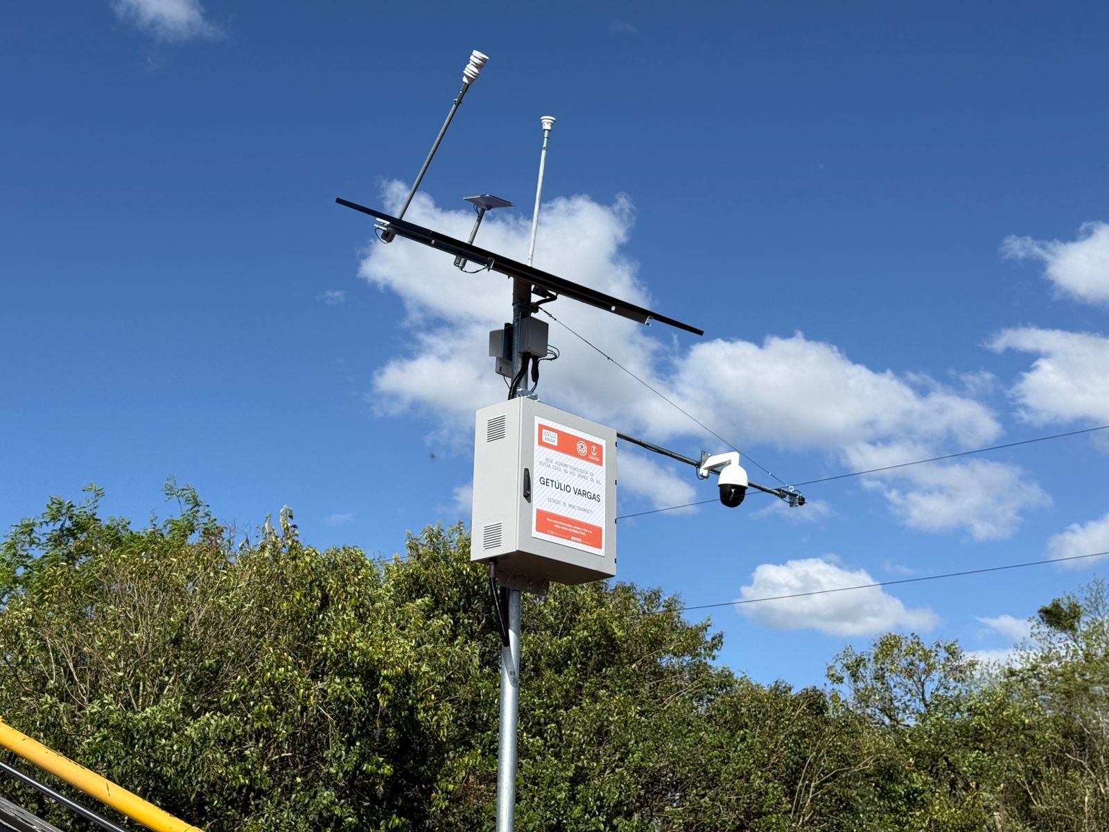 Além disso, o equipamento mede o nível do rio e possui câmera de videomonitoramento que registra em tempo real a variação do volume de água. Alimentado por energia solar, o sistema tem autonomia mínima de sete dias e envia os dados por rede 4G/5G, com backup via satélite, assegurando funcionamento mesmo em situações adversas.