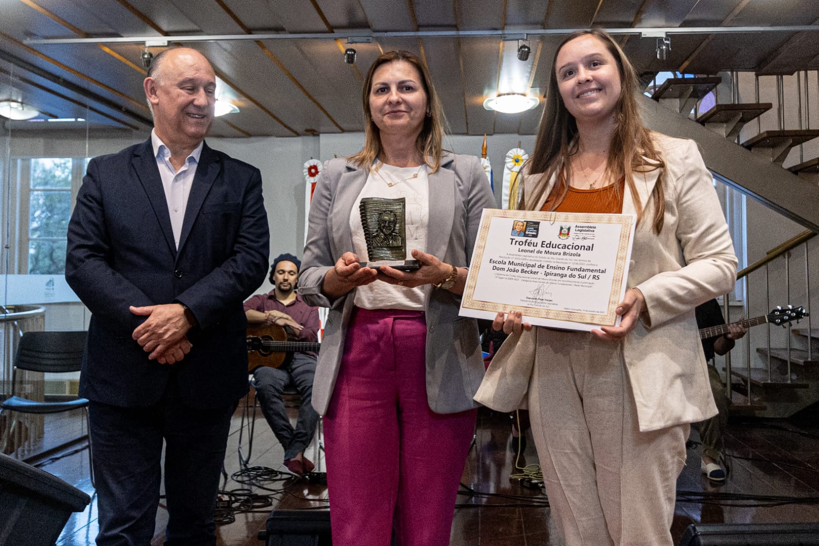 A Escola Municipal de Ensino Fundamental Dom João Becker, de Ipiranga do Sul, foi uma das instituições homenageadas durante a cerimônia de entrega do Troféu Educacional Governador Leonel de Moura Brizola, que aconteceu na quarta-feira, 15, no Memorial do Legislativo, em Porto Alegre. O evento, promovido pela Assembleia Legislativa, reconhece escolas públicas municipais e estaduais que obtêm os melhores resultados no Índice de Desenvolvimento da Educação Básica (IDEB).