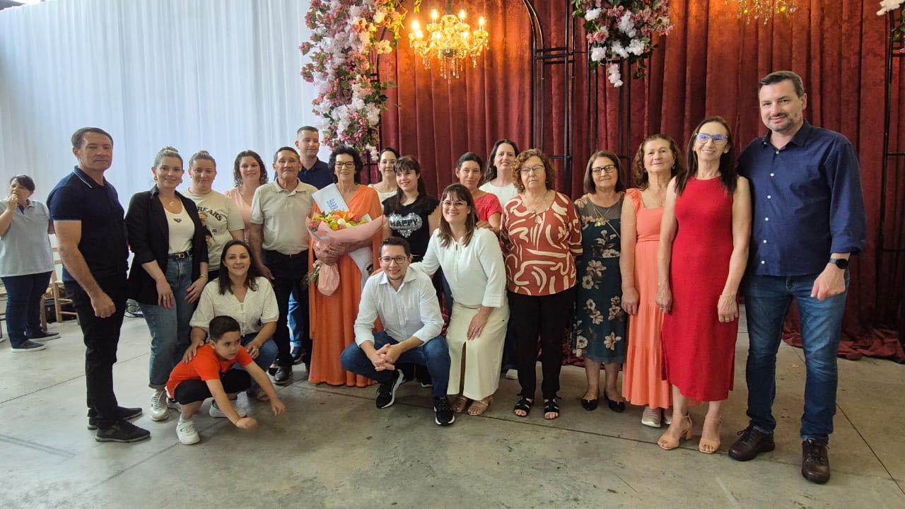 A representante do município, rainha da melhor idade Nilce Cezar, participou do encontro acompanhada do prefeito Anderson Bagatini, da primeira-dama Juliana Bagatini, do secretário da Cidadania Lucas Morandi, do coordenador dos grupos de idosos Adão Posso, de servidores do CRAS, familiares e integrantes do grupo de idosos.