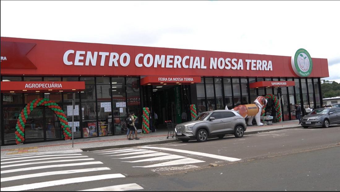 O Supermercado Nossa Terra é o principal negócio do Novo Centro Comercial. Com um ambiente amplo e bem estruturado, foi planejado para oferecer preços acessíveis, produtos de qualidade e atendimento próximo da comunidade. O espaço reúne desde alimentos frescos da agricultura familiar como frutas, verduras, panificados e produtos coloniais até itens de mercearia, higiene e limpeza, todos com foco em sustentabilidade.