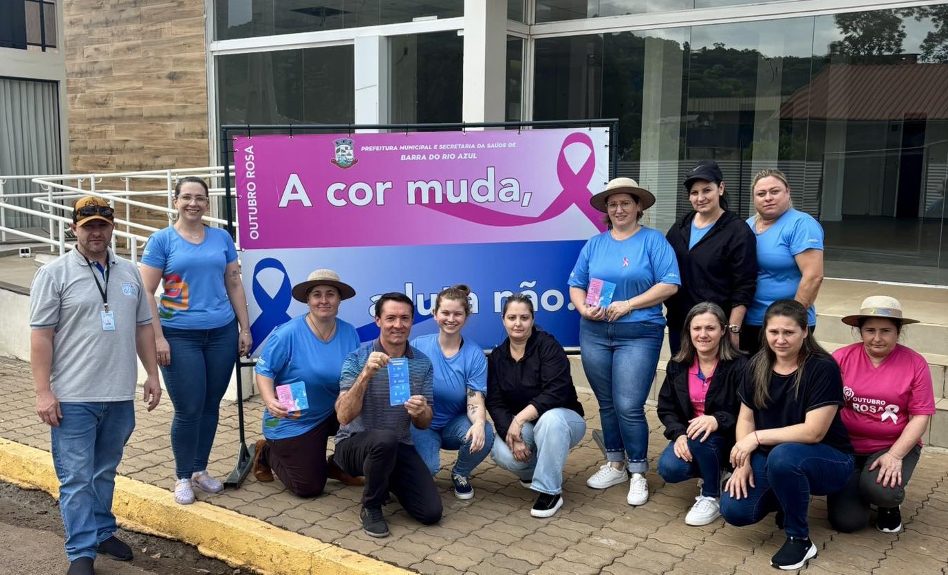 A Secretaria Municipal da Saúde de Barra do Rio Azul promove, nesta sexta-feira, 31, um pedágio de conscientização voltado às campanhas Outubro Rosa e Novembro Azul. A atividade ocorre ao longo do dia, com o objetivo de reforçar orientações sobre a prevenção e o diagnóstico precoce do câncer de mama, do colo do útero e da próstata.