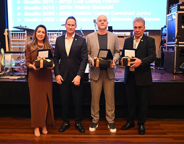 Um dos momentos centrais da noite foi o ato solene de posse da nova gestão que assumirá a partir de 1º de janeiro de 2026. Luis Alberto Massaro foi empossado como o novo Diretor Presidente, sucedendo Viviani Moscato dos Santos.