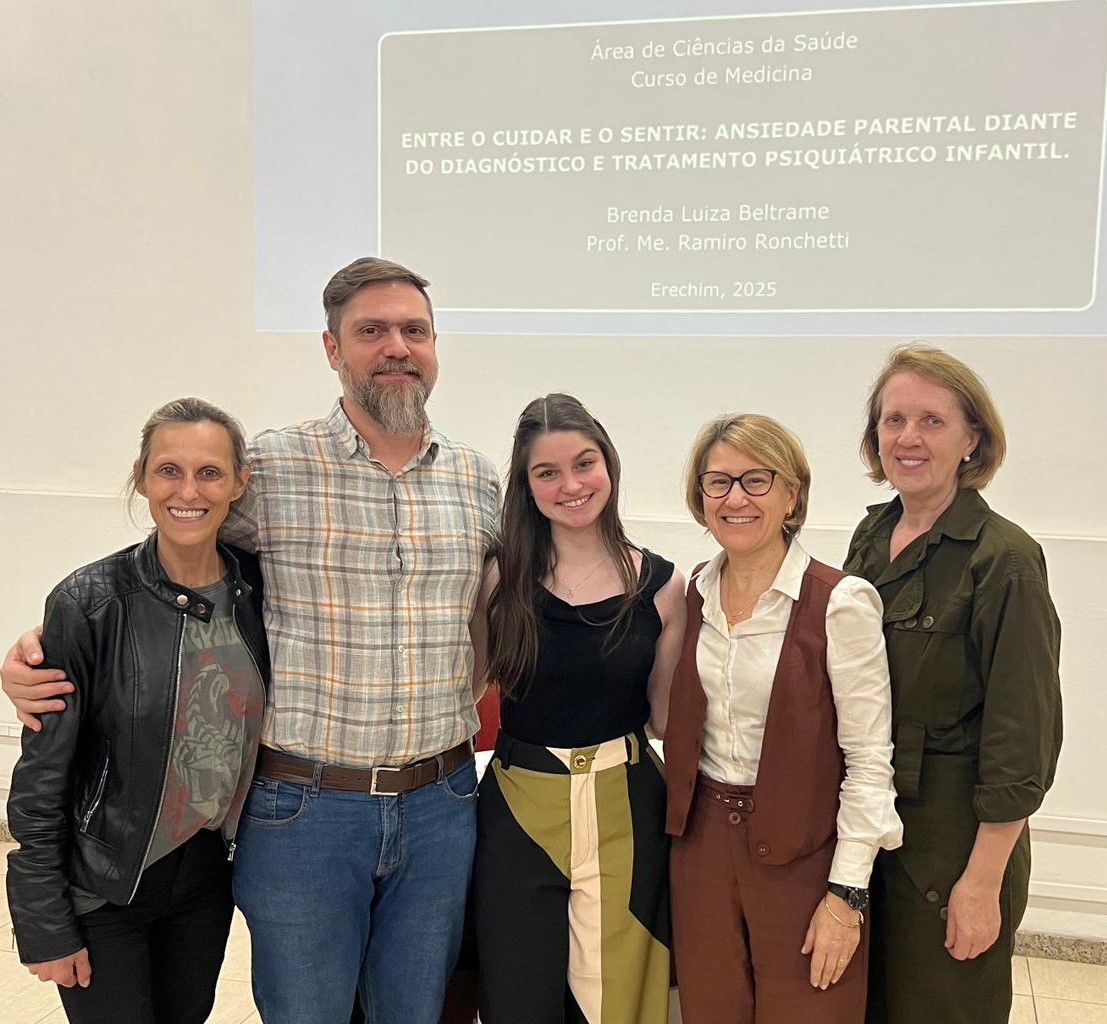 A URI Erechim (Universidade Regional Integrada do Alto Uruguai e das Missões) vivenciou um momento importante na formação dos futuros médicos: a qualificação dos projetos de Trabalho de Conclusão de Curso (TCC) da 6ª turma, que está no 6º semestre. Os projetos foram desenvolvidos no âmbito da disciplina Pesquisa Científica em Medicina, sob orientação dos professores Mariele Bressan e Itamar Gonçalves, com apoio da professora Catiane Cabral nos aspectos éticos da pesquisa. As apresentações são apreciadas por uma banca composta pelos orientadores e pelas professoras Miriam Wilk Wisniewski e Elisabete Maria Zanin.