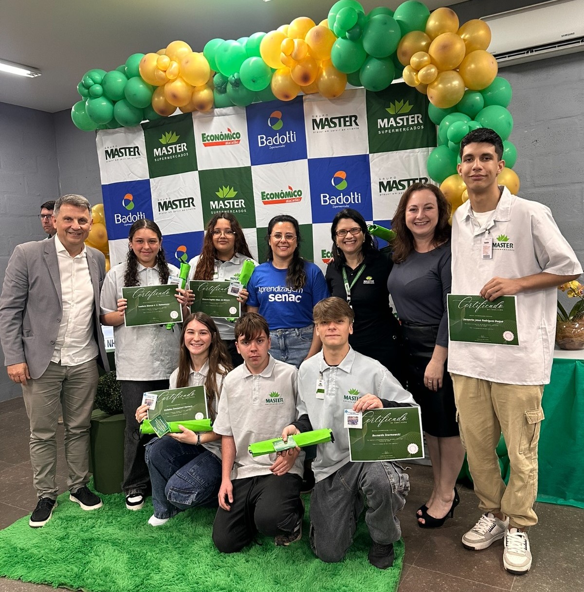 A manhã da última quarta-feira (12) foi marcada por emoção, orgulho e reconhecimento no encerramento de mais uma turma do Programa de Aprendizagem desenvolvida pelo Senac Erechim em parceria com a empresa Master. A cerimônia, organizada pelo setor de Recursos Humanos do Grupo Master, reuniu pais, gestores, colaboradores e representantes do Senac em um momento de celebração e valorização da trajetória dos jovens.