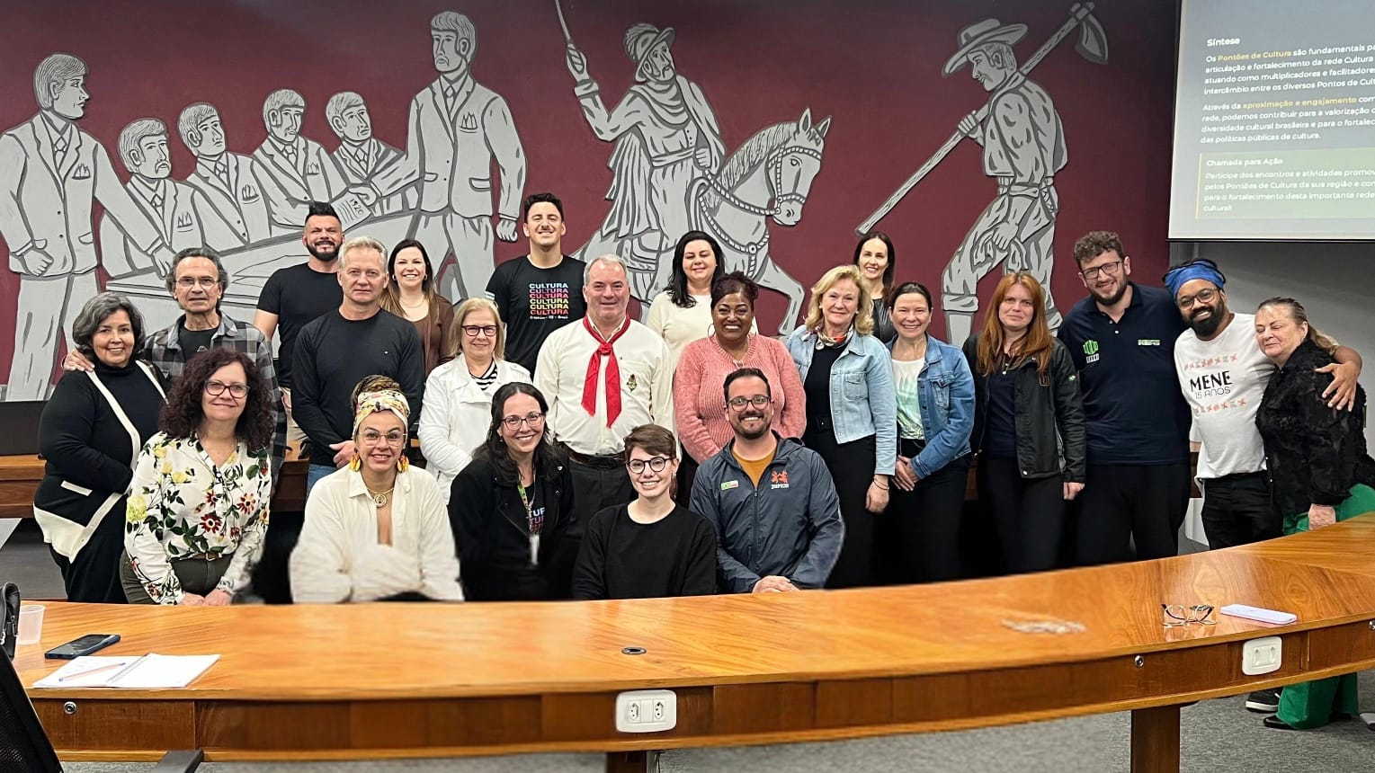 Na noite de segunda-feira (17), a Câmara de Vereadores de Erechim recebeu um importante encontro entre Pontos de Cultura, agentes culturais e comunidade, em uma formação promovida pelo Pontão RS, conduzida pela psicóloga e coordenadora Carmen Oliveira, conhecida no meio cultural como Mãe Carmen. A atividade integrou o projeto Ponto a Ponto – Tecendo as Culturas Gaúchas – ASSOBECATY, contemplado no Edital nº 09/2023 – Cultura Viva: Fomento a Pontões de Cultura, do Ministério da Cultura.