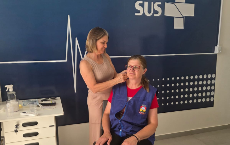 Após a atividade com o Flamenco, as profissionais também participaram de uma sessão de auriculoterapia, prática integrativa oferecida pela enfermeira Sônia Ferreira. A técnica consiste na estimulação de pontos específicos na orelha, contribuindo para o equilíbrio do sistema nervoso e auxiliando na redução do estresse e de sintomas depressivos.