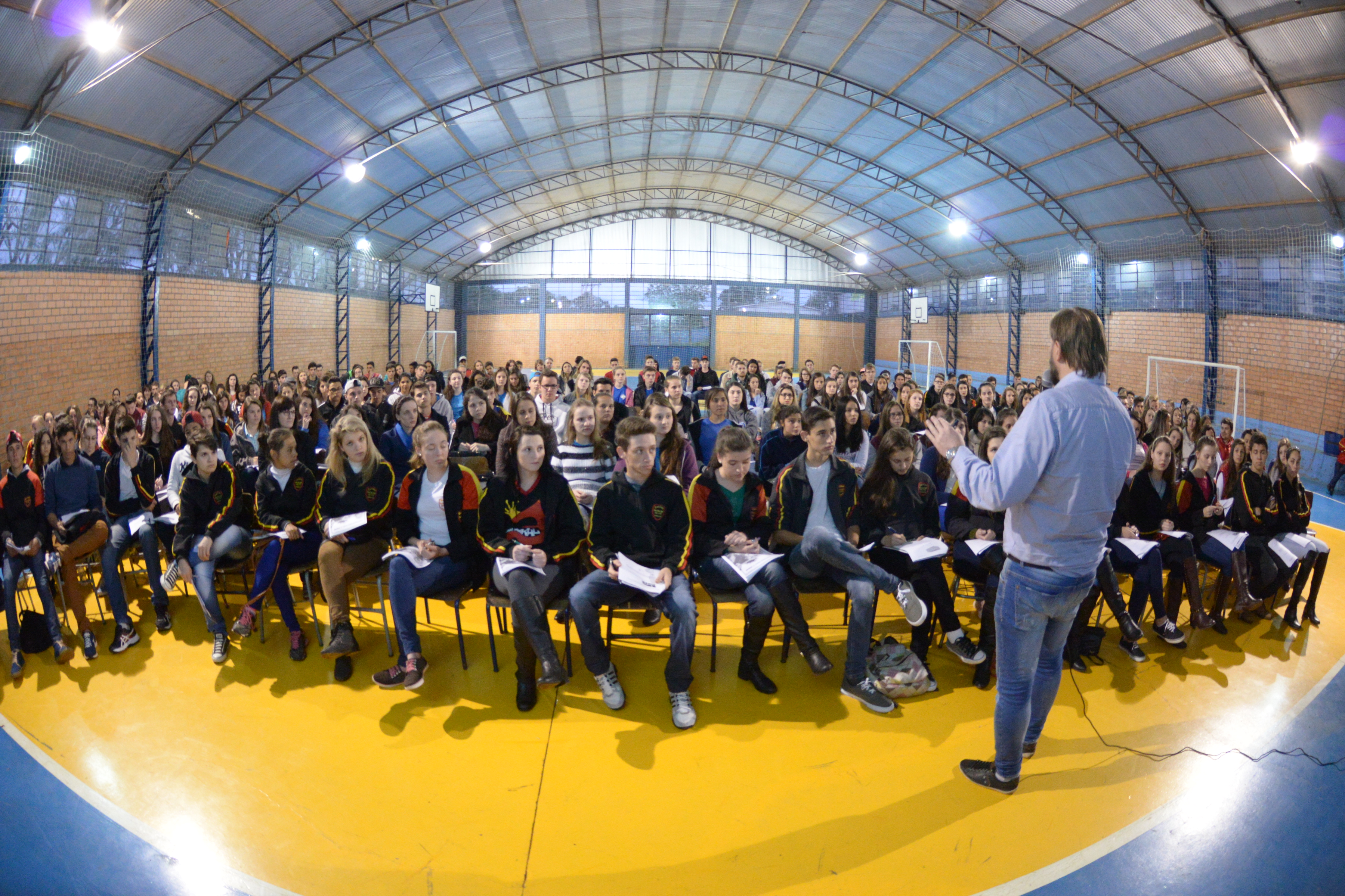 Estudantes de seis municípios da região se reuniram na última semana para um aulão de matemática na Escola Estadual de Educação Básica Érico Veríssimo de Jacutinga. A aula aconteceu no ginásio de esportes da instituição e foi ministrada pelo professor André Jucoski, do Garra Pré Vestibular, de Erechim. A atividade contou com o apoio da Faculdade IDEAU de Getúlio Vargas, através dos professores Eduardo Schorr e José Ricardo Gomes. Participaram do evento estudantes de Jacutinga, Quatro Irmãos, Campinas do Sul, Cruzaltense, Ponte Preta e Entre Rios do Sul.