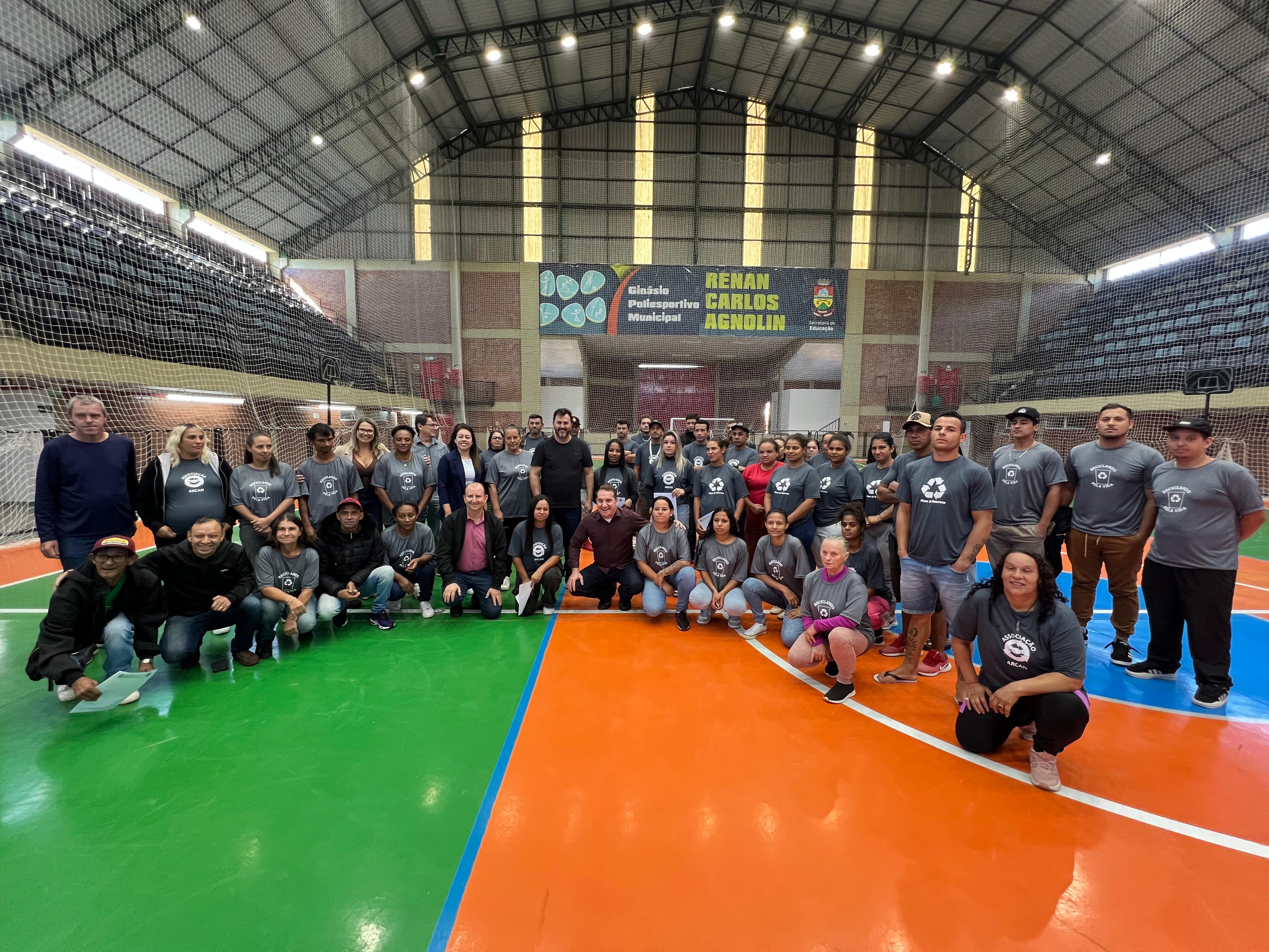 Mais incentivos para melhorar a estrutura operacional das Associações de Recicladores de Erechim, aprimorar processos, profissionalizar o setor, e buscar mais eficiência na gestão dos resíduos sólidos urbanos do município. Esses foram os objetivos do evento que ocorreu, nesta sexta-feira (10), no Ginásio Municipal Renan Carlos Agnolin, com a entrega de R$ 125 mil pela Prefeitura de Erechim, por meio da Secretaria de Meio Ambiente, como contrapartida ao programa Cataforte, em que quatro associações foram contempladas. E, também, com o repasse de equipamentos, no valor de R$ 130 mil, para todas as associações, com recursos de emendas impositivas de 2025 do vereador, Claudemir de Araujo, e do ex-vereador, Anacleto Zanela.