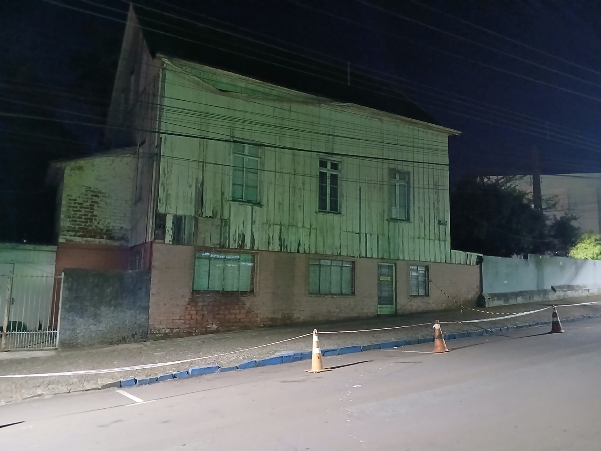 Uma das primeiras casas construídas em Erechim precisou ser interditada pela Defesa Civil após parte da estrutura desabar no último domingo (26). A residência fica localizada na esquina da Rua Uruguai com a Avenida Presidente Vargas, proximidades da Câmara de Vereadores e da Catedral São José.