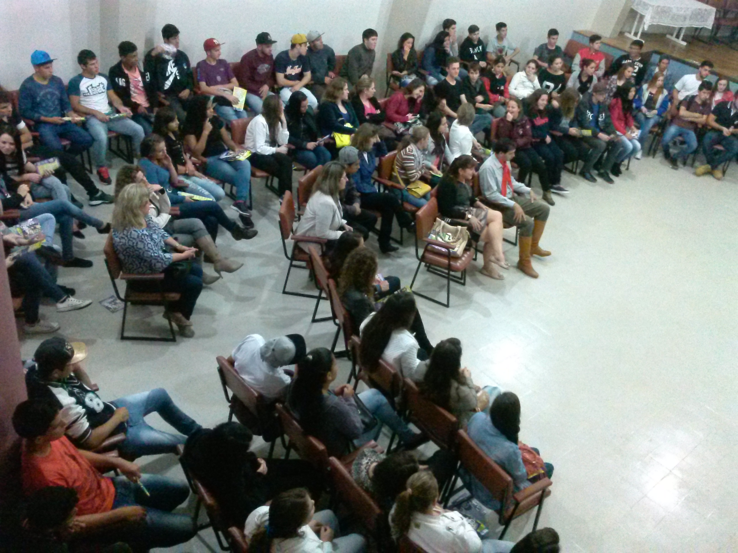 O encontro reuniu senegaleses, ganeses, haitianos, um libanês, um argentino e uma norte-americana, estudantes e intercambistas do Barão/FAE e também alunos do Barão, numa parceria com o Centro de Educação de Jovens e Adultos de Erechim (Ceja) no curso de português para estrangeiros.