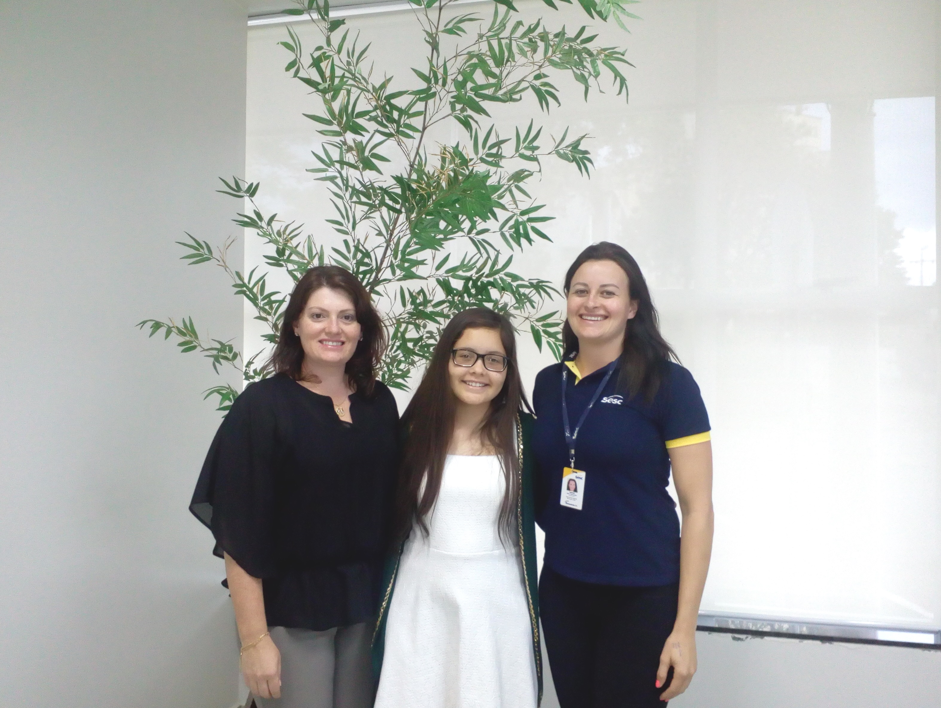 A família e amigos da estudante Larissa Oliveira de Souza, de 14 anos, têm muito a comemorar. Larissa foi a única aluna de Erechim selecionada para a Escola Sesc de Ensino Médio (ESEM ). Além dela, foram aprovados mais nove gaúchos das cidades de Frederico Westphalen, Bagé, Farroupilha, Cachoeira do Sul, São Borja e Tapes. Depois de passar por todas as etapas do processo seletivo, a jovem garantiu a vaga e compareceu à Unidade Sesc para comemorar a seleção.