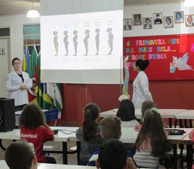 A intervenção foi composta de uma pequena palestra, em que de forma muito simples, para o entendimento das crianças, e com auxílio de modelos anatômicos, abordou-se conceitos de anatomia e fisiologia da coluna vertebral e a relação de maus hábitos posturais na escola e no dia a dia, com a origem de lesões nessa importante estrutura do corpo humano. A forma correta de sentar, utilizar a mochila, o computador e o celular foram os principais pontos abordados.