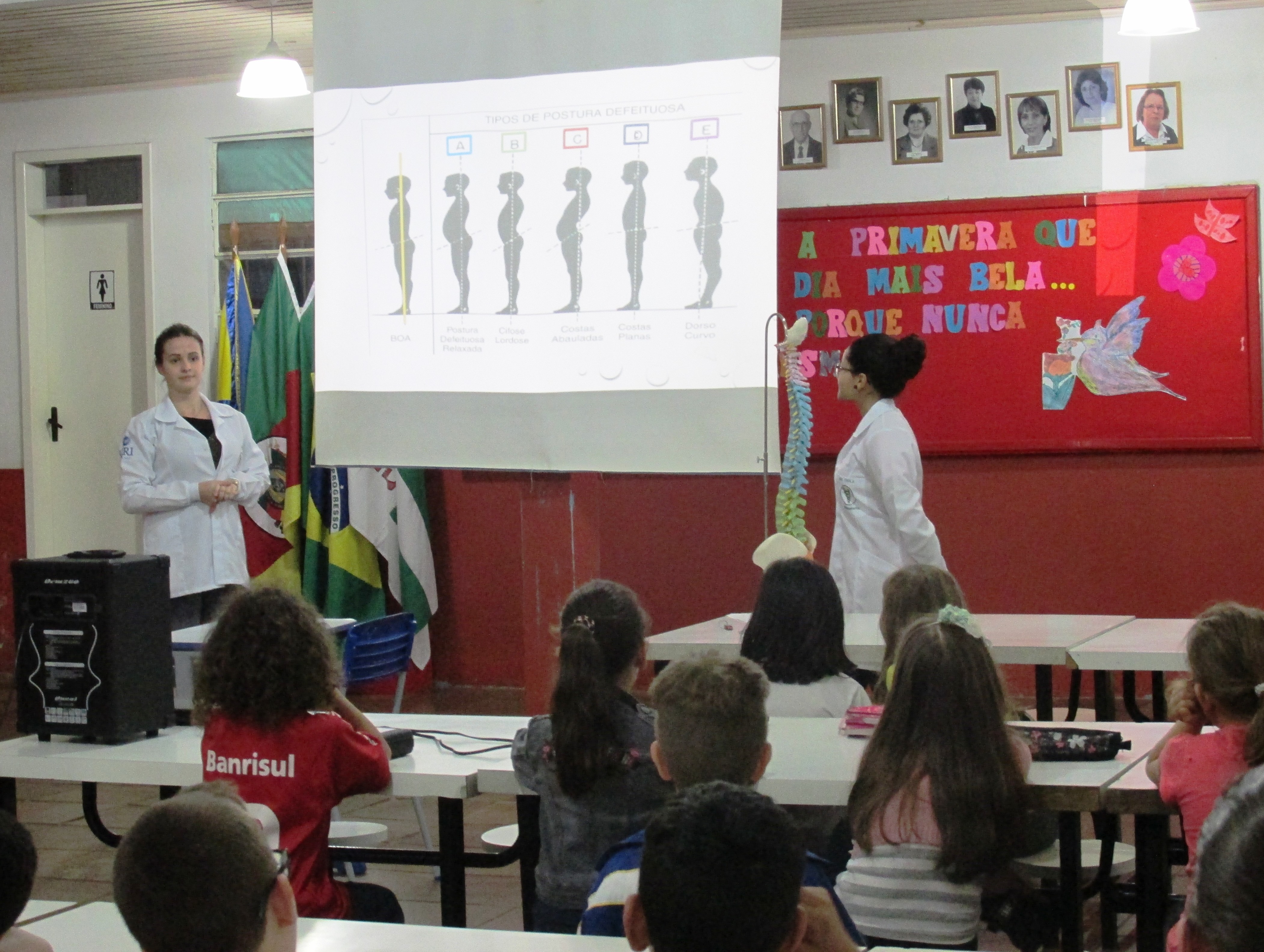 Os acadêmicos do quarto semestre do curso de fisioterapia da URI estiveram na Escola Estadual de Ensino Fundamental Victor Issler, de Erechim, onde desenvolveram uma intervenção de educação em saúde para os alunos do primeiro ao quinto ano do ensino fundamental. A atividade prática foi dentro da disciplina de Fisioterapia em Promoção à Saúde, ministrada pela professora Tatiana Comerlato.