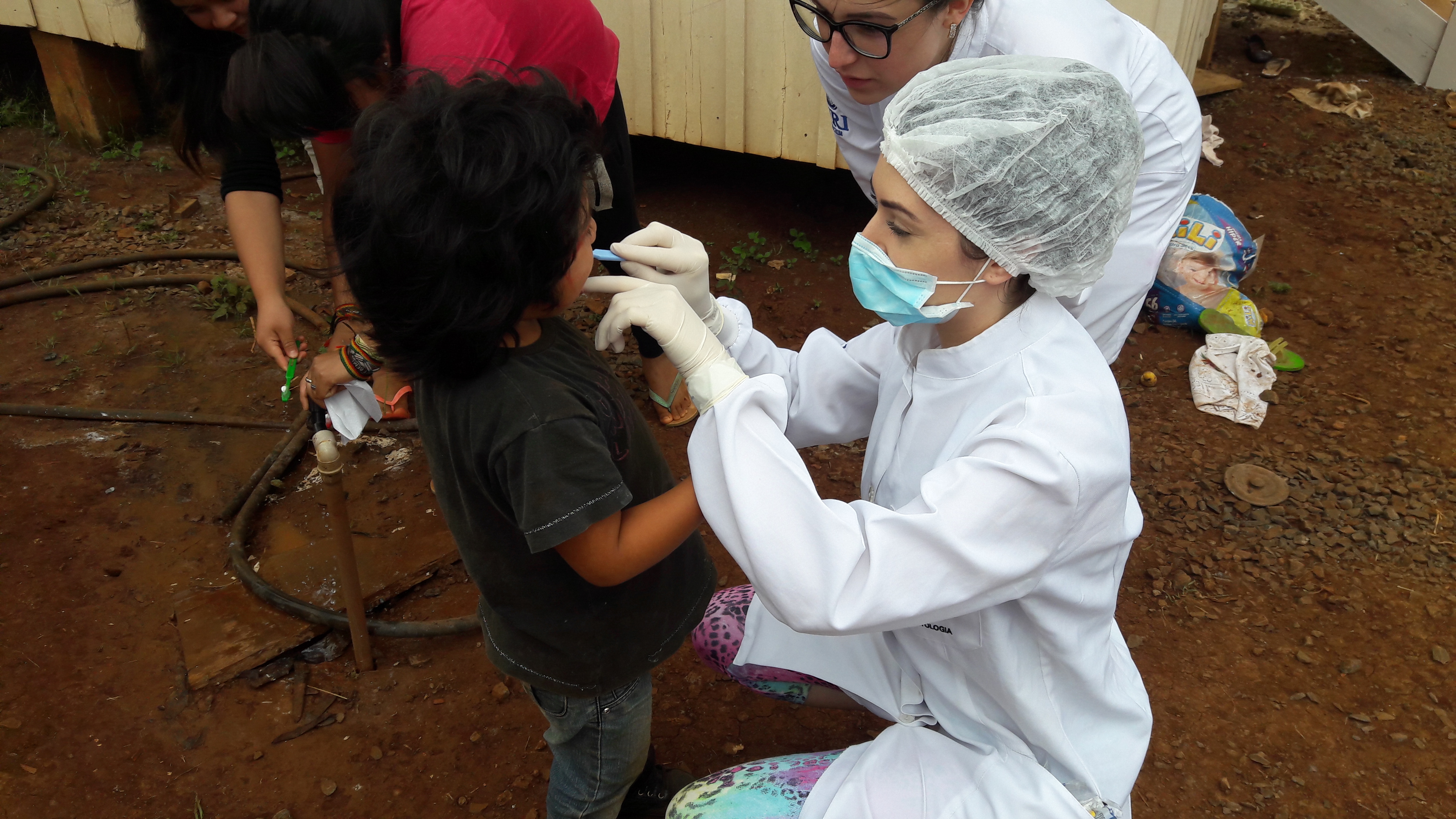 Em seguida, os alunos fizeram uma apresentação teatral sobre cuidados com a saúde bucal e demonstraram como realizar a higiene bucal em manequim. Por fim, repassaram orientações sobre escovação para as crianças e adolescentes do grupo, com a distribuição de escovas dentais.