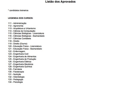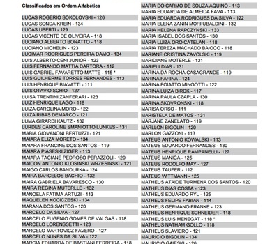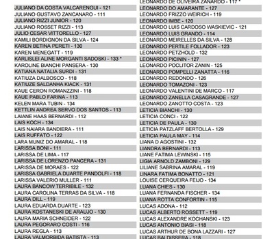Na segunda-feira (5), deverão efetuar a matrícula os aprovados em Enfermagem, Engenharia Civil e Nutrição. Já na terça-feira (6), será a vez dos aprovados em Fisioterapia, Arquitetura e Urbanismo, Engenharia Química e Engenharia de Produção. No dia 07, quarta-feira, as matrículas deverão ser efetuadas pelos aprovados em Ciências Biológicas (licenciatura e bacharelado), Educação Física (licenciatura e bacharelado), Ciências Contábeis e Pedagogia.