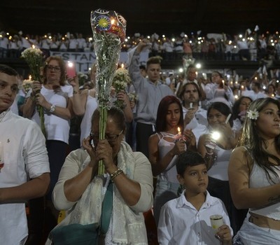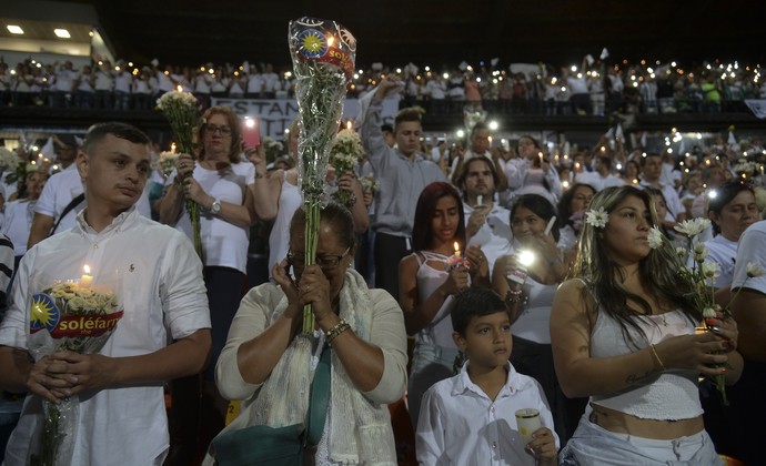 Milhares de colombianos participaram da cerimônia em homenagem às vítimas do desastre aéreo que matou jogadores e dirigentes da Chapecoense e jornalistas brasileiros. O espetáculo de solidariedade ocorreu ontem (30) à noite no estádio do Atlético Nacional de Medelin, no mesmo local e horário em quer seria disputada a primeira partida do final da Copa Sulamerica.