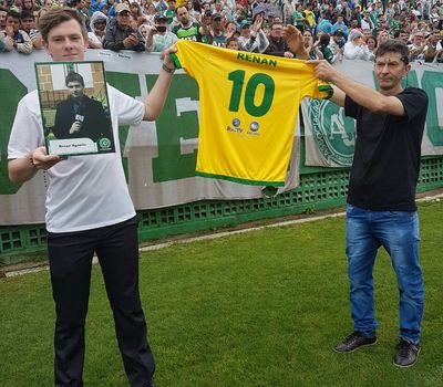 O nome de Renan Agnolin, jornalista erechinense morto no desastre aéreo na Colômbia, foi ovacionado pela torcida da Chapecoense. O momento de emoção ocorreu quando o pai Luiz e o irmão Rangel, realizaram a volta olímpica na Arena Condá, levando a foto e uma camiseta dele.