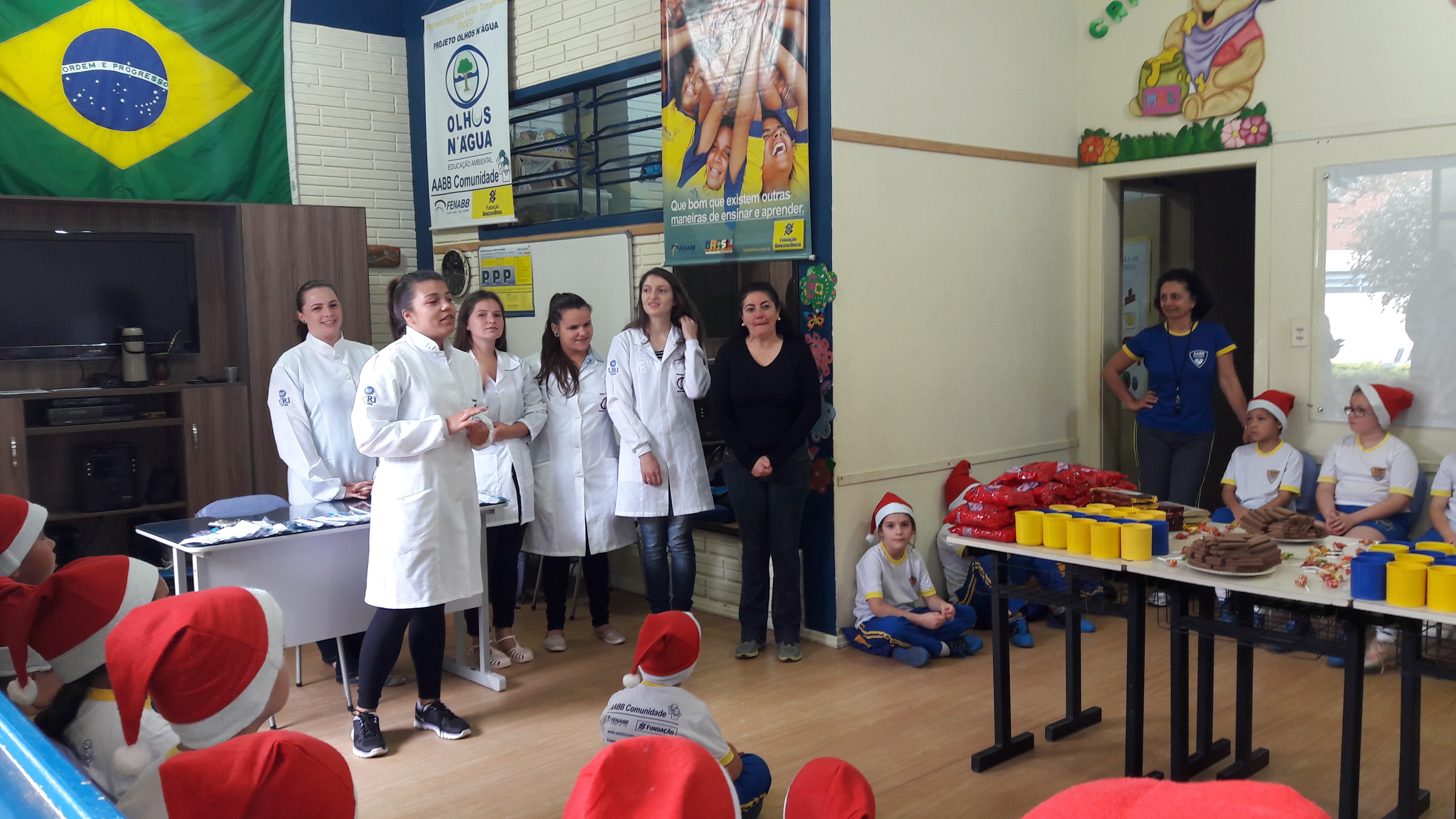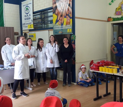 O Curso de Odontologia da URI realizou na terça-feira, dia 29 de novembro, uma atividade de encerramento com as crianças do Projeto AABB Comunidade de Erechim. O professor e coordenador do Curso, Antônio Augusto Iponema Costa, juntamente com as acadêmicas Arieli Caroline Santana, Cassiane Bruna Claro, Franciele Loíse Rambo, Kelen Vanessa de Paula, Monique Ochi e Suelen Ventorin, proporcionaram às crianças um momento de bastante descontração e emoção.