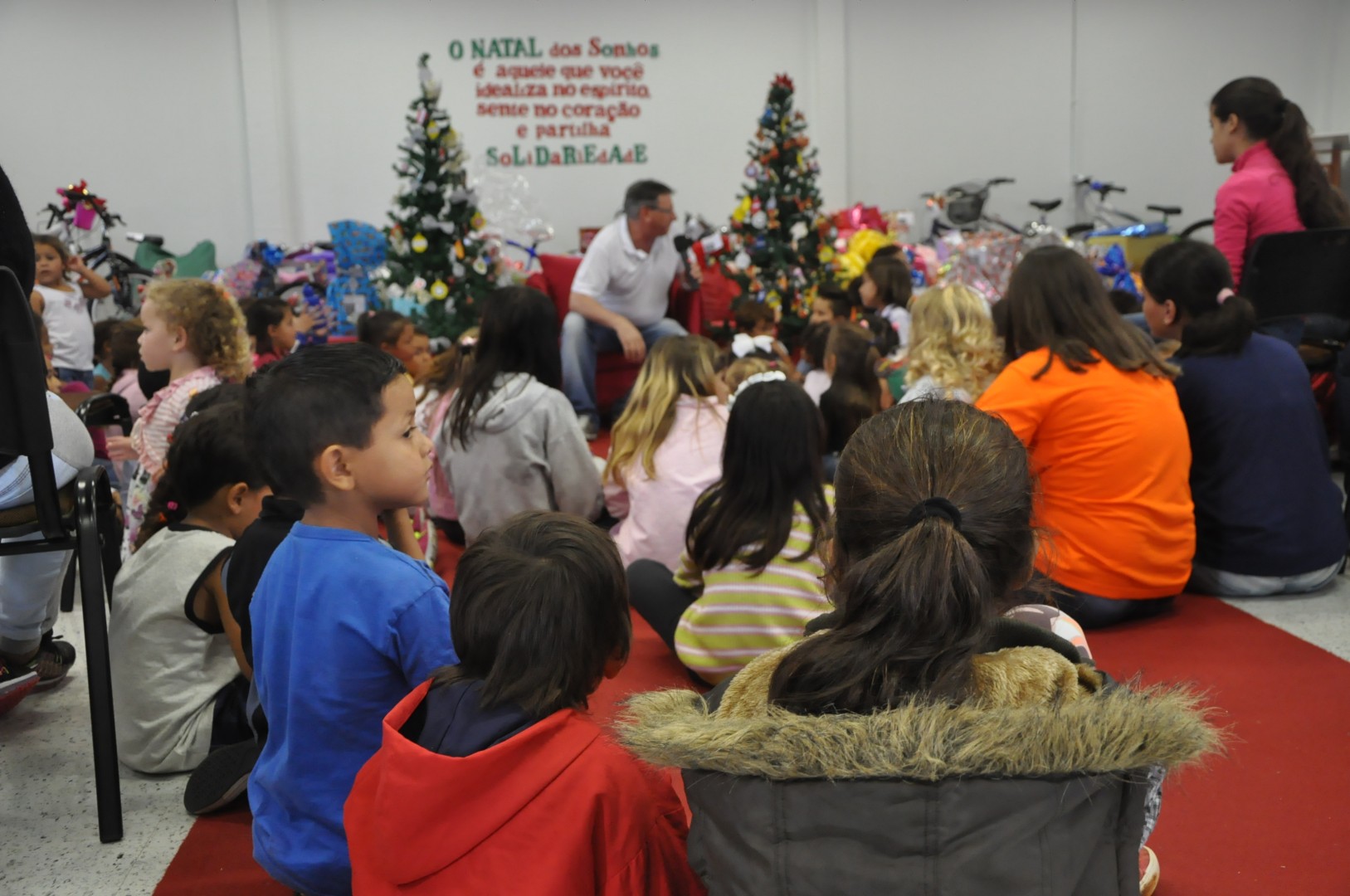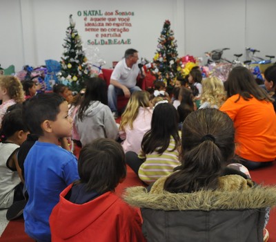 O capelão da universidade, Pe. César Menegat, falou a todos os presentes sobre a verdadeira importância do Natal, ensinando as crianças algumas canções natalinas e preparando a recepção ao Papai Noel, como nos anos anteriores. Além dos presentes, o Bom Velhinho recebeu cada uma das crianças com muita ternura e carinho.