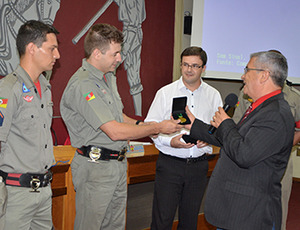 A Casa Legislativa entregou a Medalha Mérito Legislativo aos bombeiros Diego Jorosczniski e Cleonir Antônio Soares