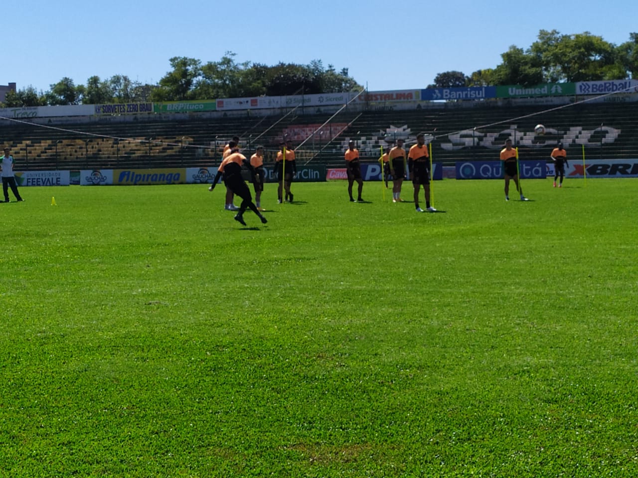 Jogadores fizeram treinamento técnico com reforços do zagueiro e Diego Churín