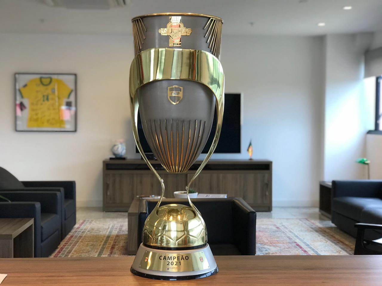 A Federação Gaúcha de Futebol - FGF apresentou a taça do Gauchão 2021, que será entregue ao campeão da competição