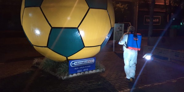 Em ação conjunta entre a Defesa Civil e a Força Voluntária o estádio passou por medidas preventivas a proliferação do novo Coronavírus