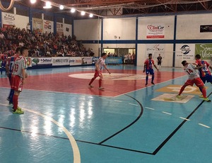 Foi um confronto entre dois dos primeiros colocados na tabela de classificação do campeonato, em uma quadra bem menor do que os atletas do Galo estão acostumados a jogar e com boa presença da torcida do time da casa
