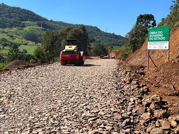 O fluxo de veículos pela via, que liga o município à ERS-420, foi interrompido devido ao risco de desmoronamento