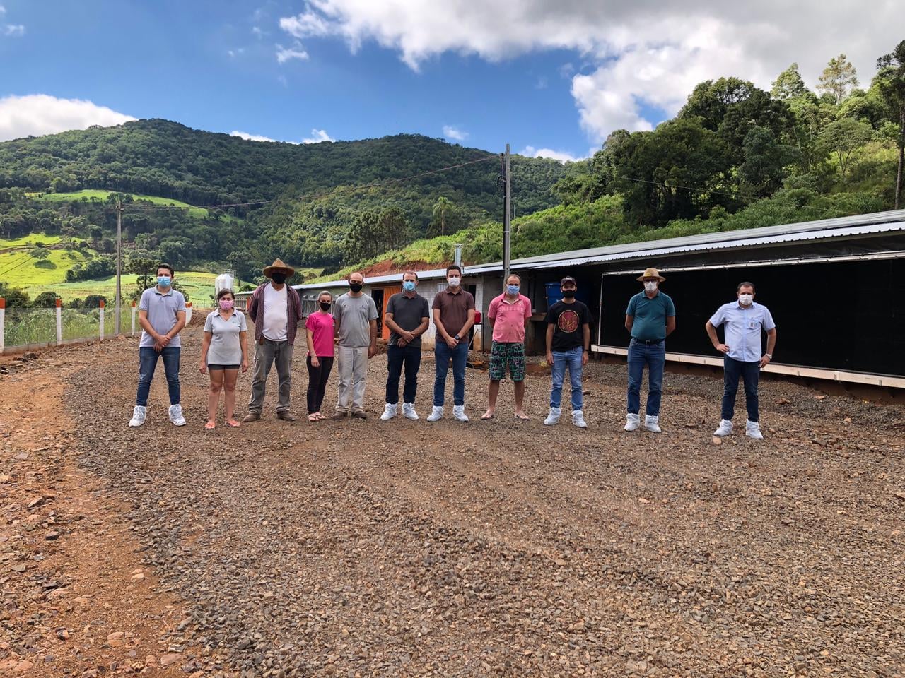 Prefeito Marcelo Arruda e vice Maximino Basso acompanharam a entrega da máquina à família Busatto, Norbak e Cizersa