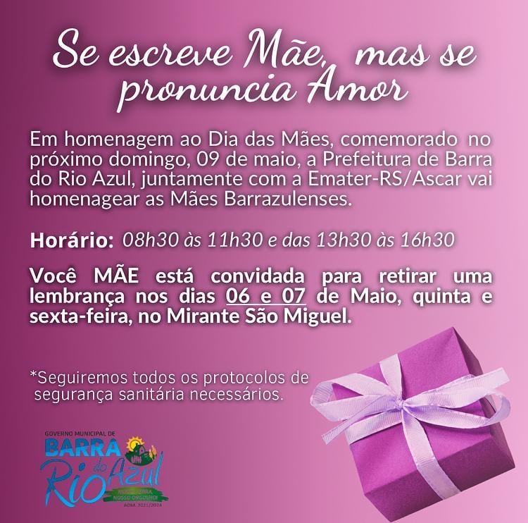 Na quinta e sexta-feira (6 e 7), no Mirante São Miguel será feita entregue uma pequena lembrança pelo Dia das Mães